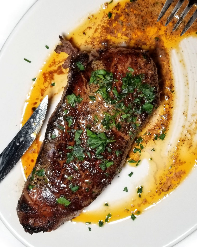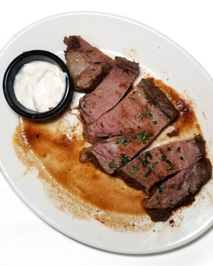 This is listed as their signature and special cut. It’s a boneless strip that’s cooked with Cajun spices in a cast iron skillet. The strange thing about this particular cut is that it didn’t really bring that much Cajun flavor. I think the rib eye had more because of the butter.