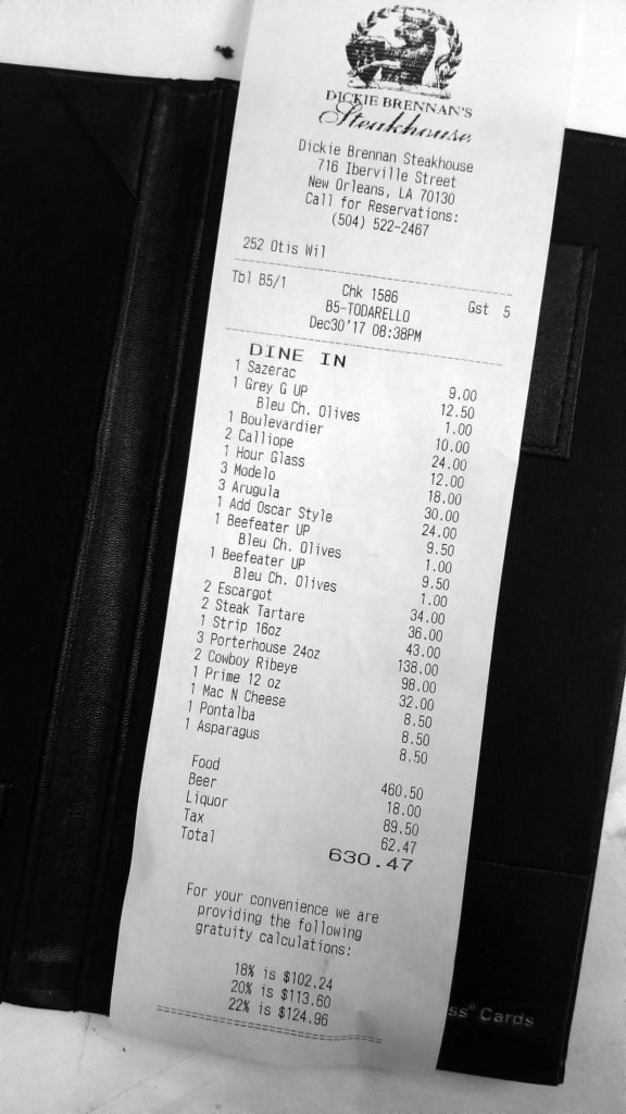 Anyway, Dickie Brennan’s is always talked about as one of the country’s best steakhouses, so I had to give it a try. And I was thorough. I ate three steaks myself, pretty much, and helped with a fourth. See below: