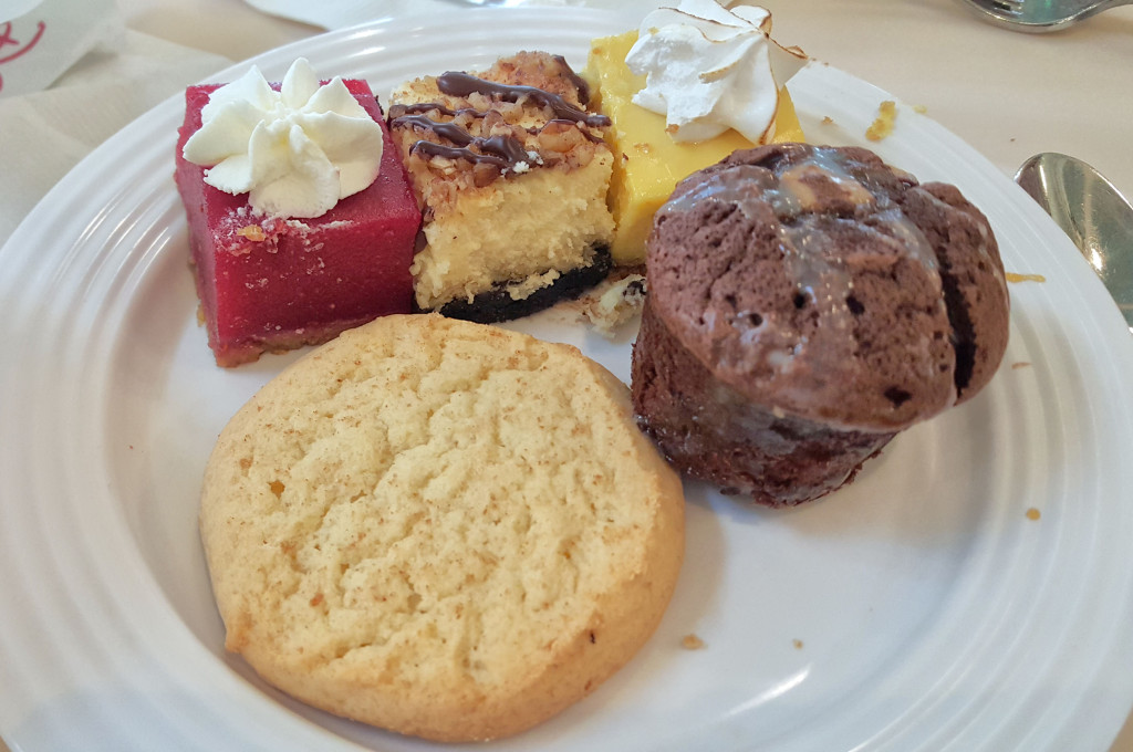 They also had some good dessert here, in particular the small cube cakes. Key lime pie, cheesecake with Oreo crust, and a berry pie that had the same consistency as the key lime pie but with sweeter fruit and berry flavors. All great. Even the basic sugar cookie was pretty good. The ice cream, on the other hand, was too icy for soft serve.