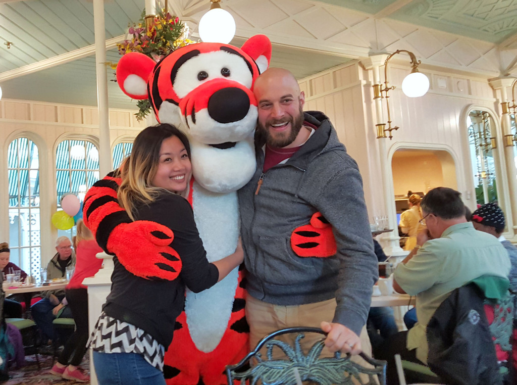 We took pics with all four Pooh characters as they wandered around the restaurant: Pooh, Piglet, Eeyore and Tigger. I won’t bore you with those. I will say that the people who wear the costumes must be very patient to deal with screaming kids every day.
