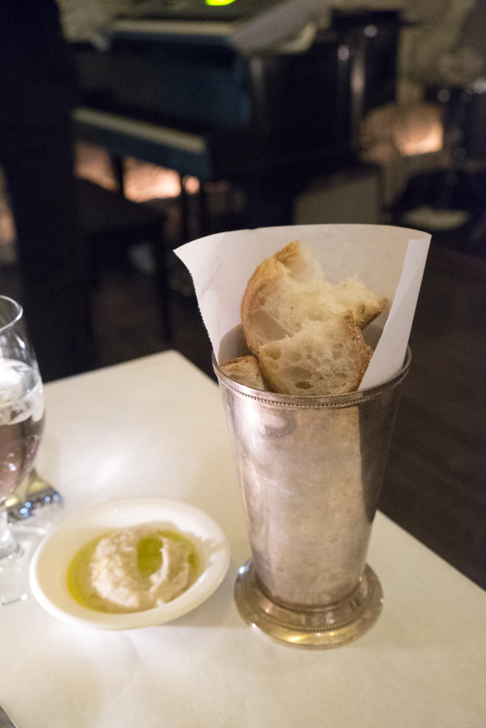 The table bread came out in a stainless steel cone, and was served warm and toasty, with a dish of white bean puree that resembled hummus, but with less aggressive spices.