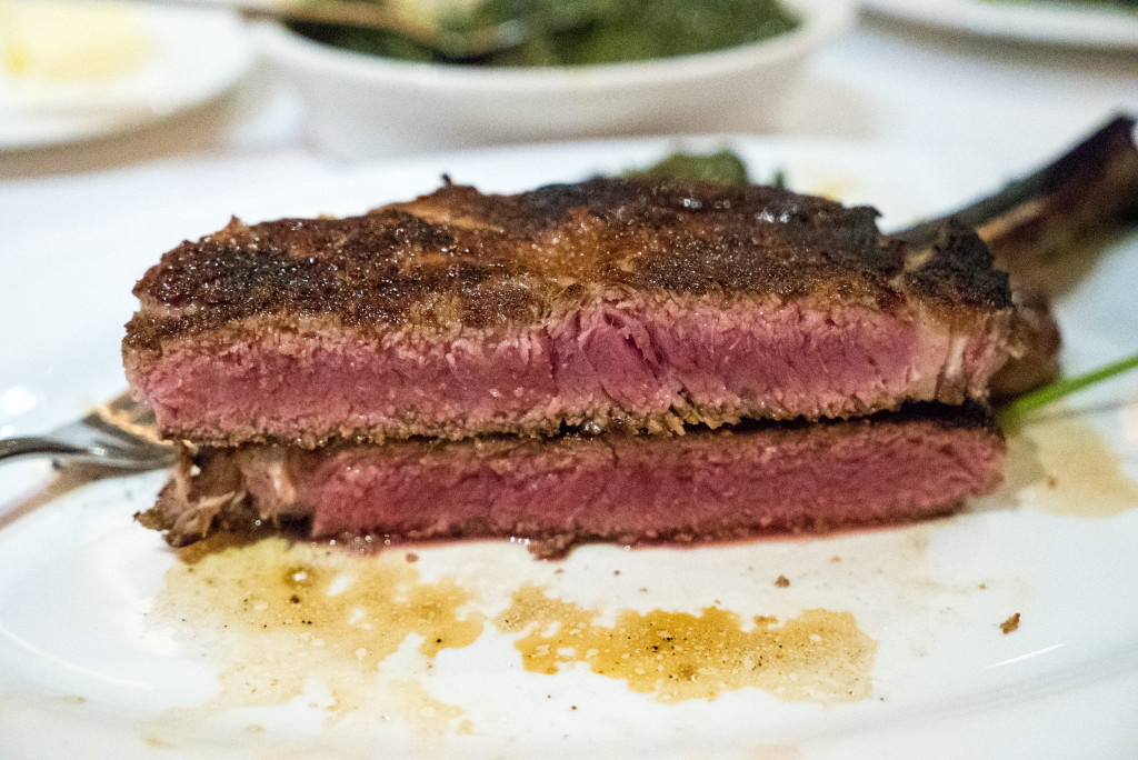 I had the bone-in rib eye. It had a great sear and crust on the outside, and it was cooked to a nice medium-rare on the inside. There was not one drop of bleed-out, as the steak was properly rested before it was served. Aside from a bit of gristle in one spot, this was a great cut of beef. Better than the other location (which is now closed).
