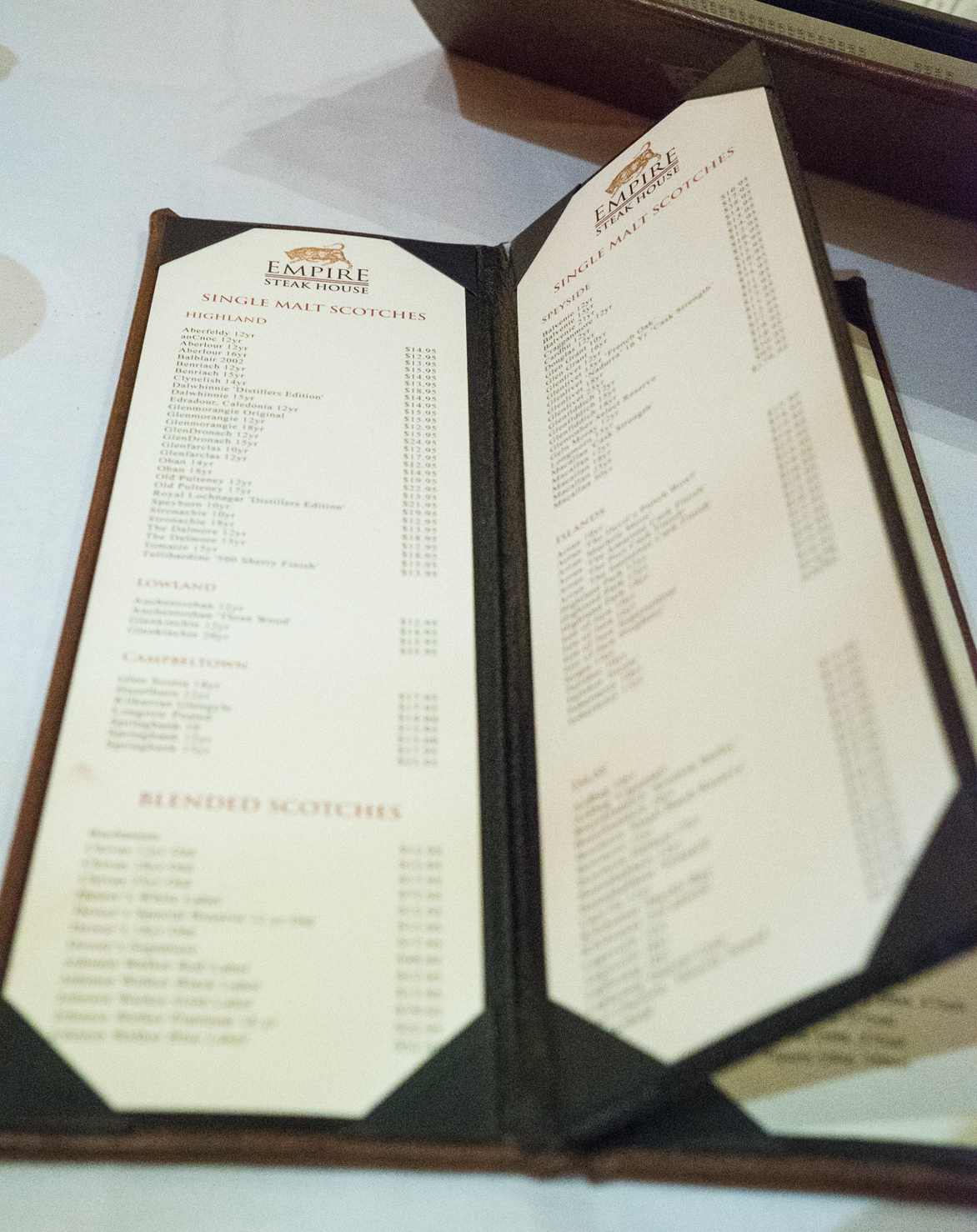 This joint is right near my apartment, so it was just a matter of time before I wandered in. I’d been to the other Empire location a while back. It was okay; room for improvement there, but I still wanted to try this other location. I went with my wife for a quick dinner. Check it out: