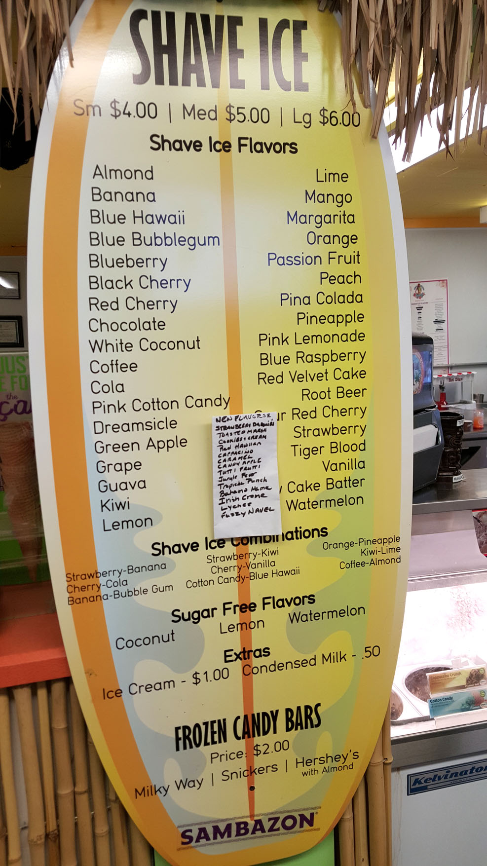 Overall it was a pretty legit experience. The ice seemed correct to me, but my wife thought that maybe they weren’t using distilled water (she said the ice was harder or chunkier than in Hawaii). The flavors were right on though. Very similar to what we tasted over there in the islands. The prices were the same too.