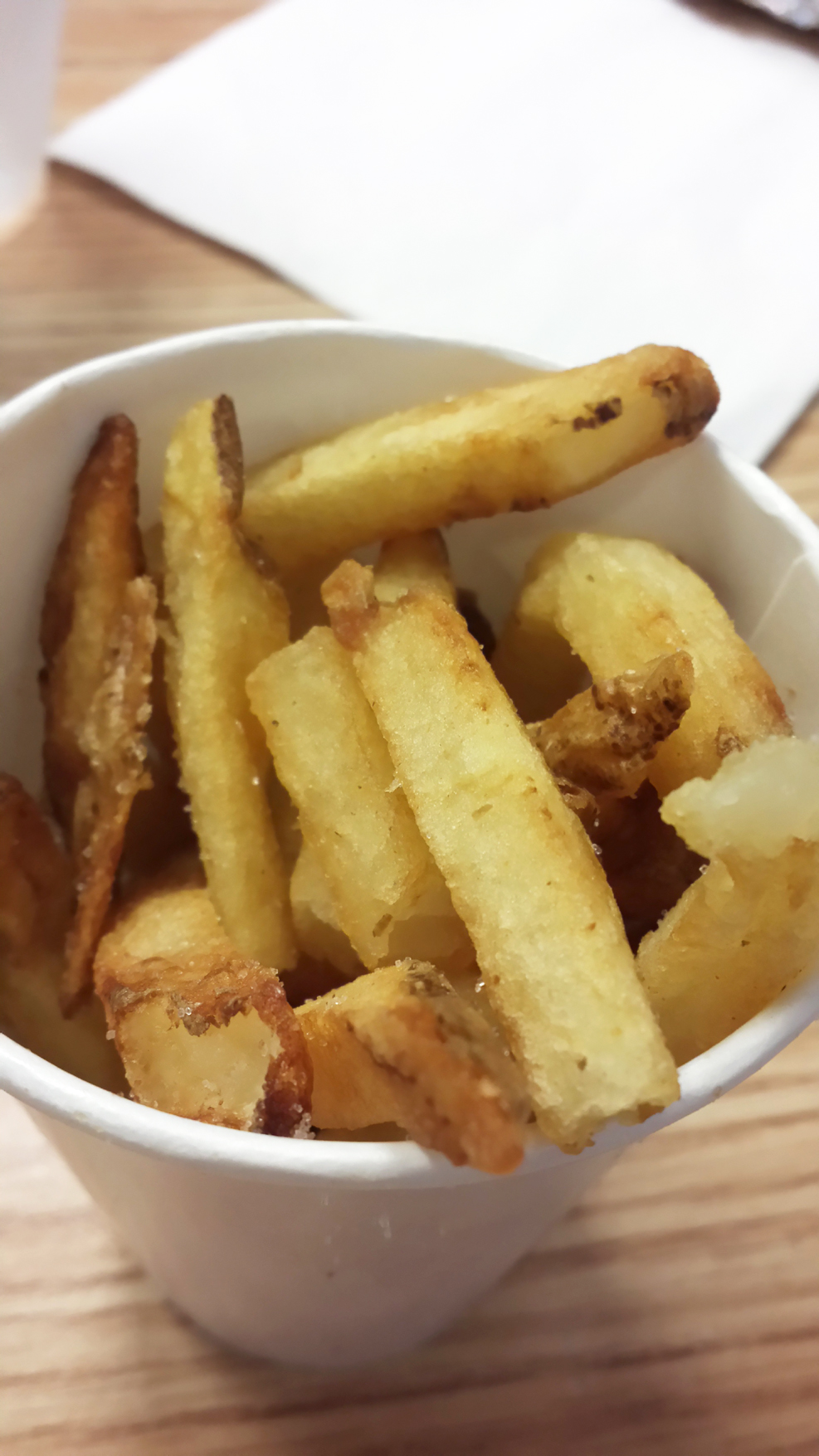 The fries were tremendous in size. I ordered the smallest size and they put them in a paper lunch bag that was almost 3/4 full with the fucks. Pretty good too. A little greasy, but all were crispy even after carrying them home in the bag.