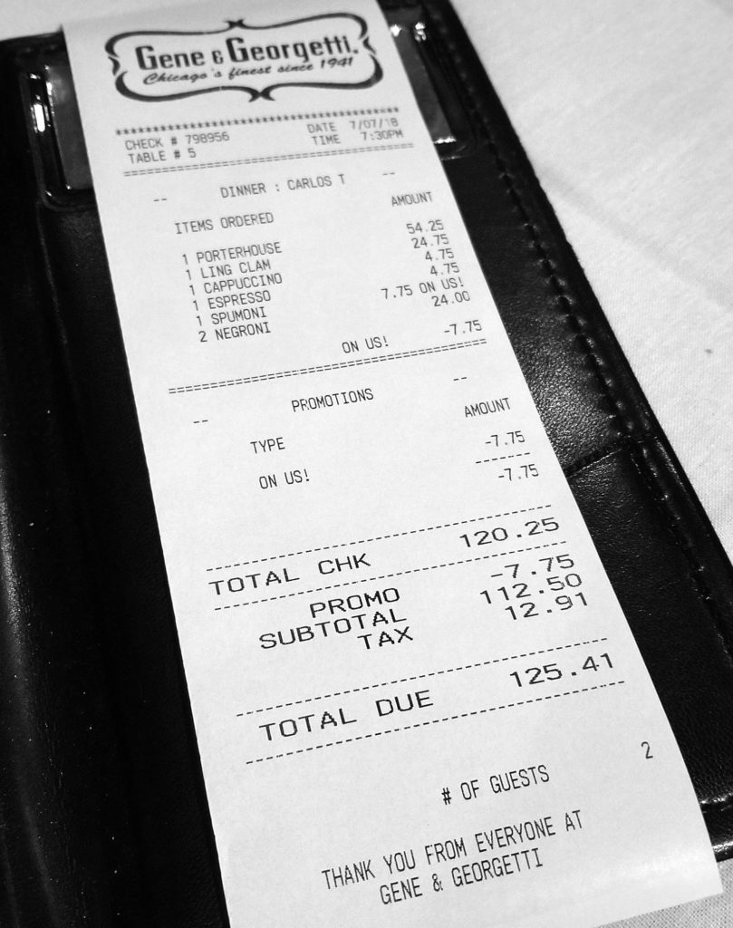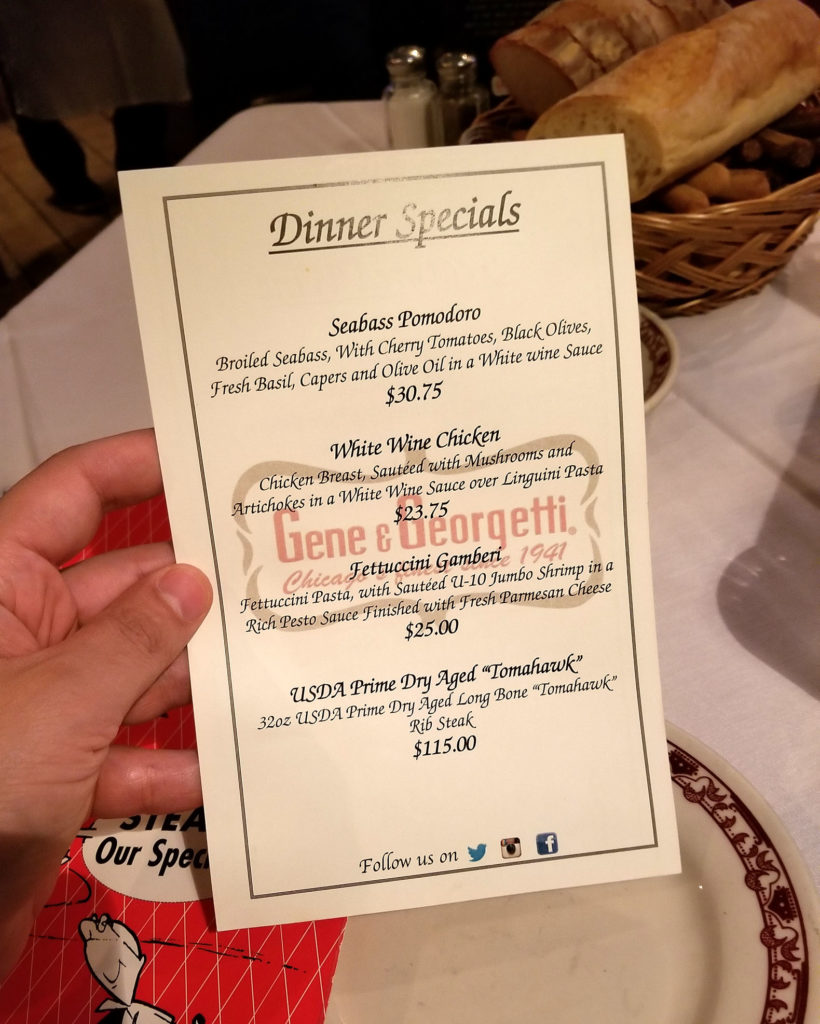 Another old timey Chicago joint that my wife and I hit on our trip was Gene & Georgetti.