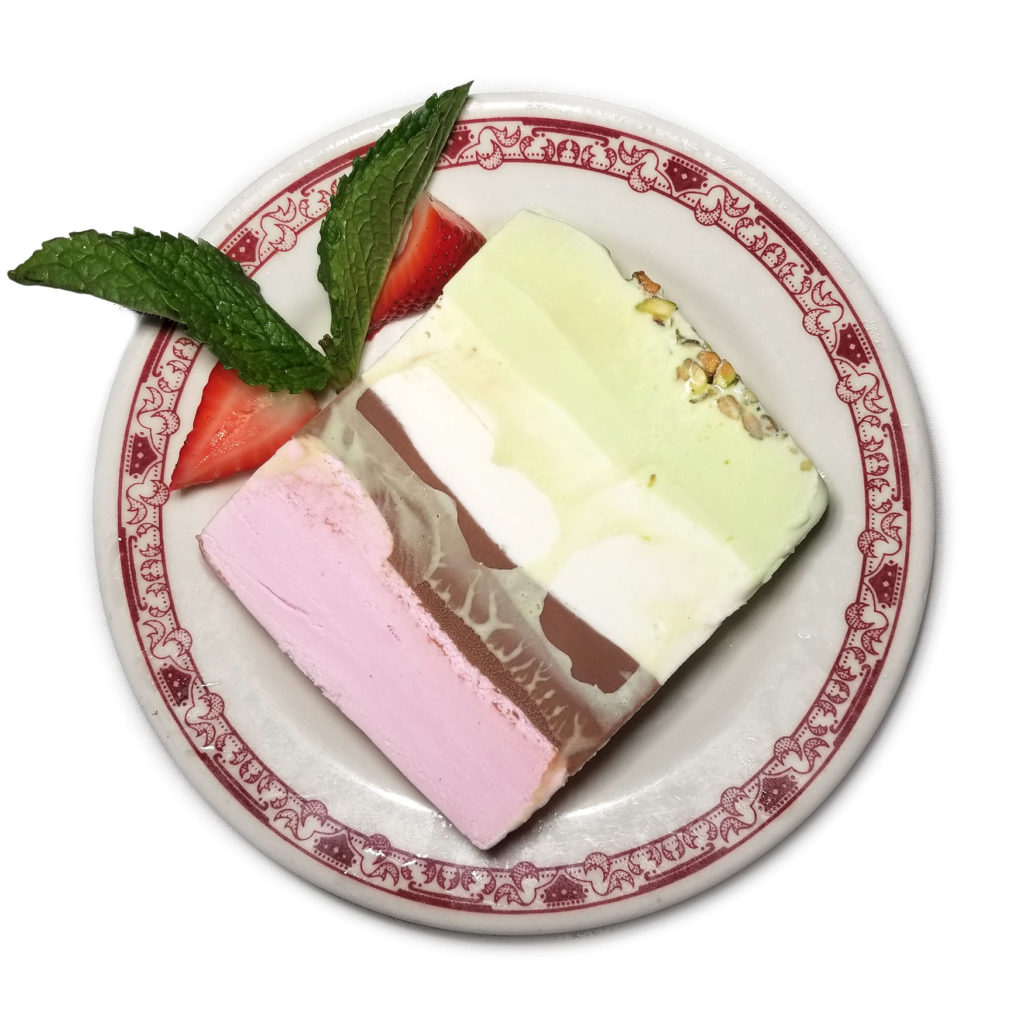 That’s pistachio, coconut, chocolate and strawberry ice cream. Keeping it simple! I like it.