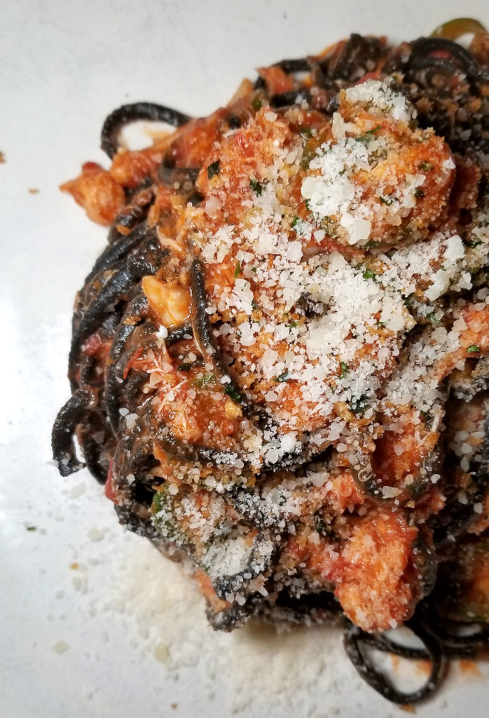 The pasta was awesome. It was pricey at $36, but there was enough to share. Squid ink linguini with Maryland lump crab.