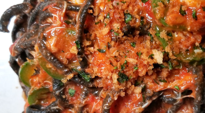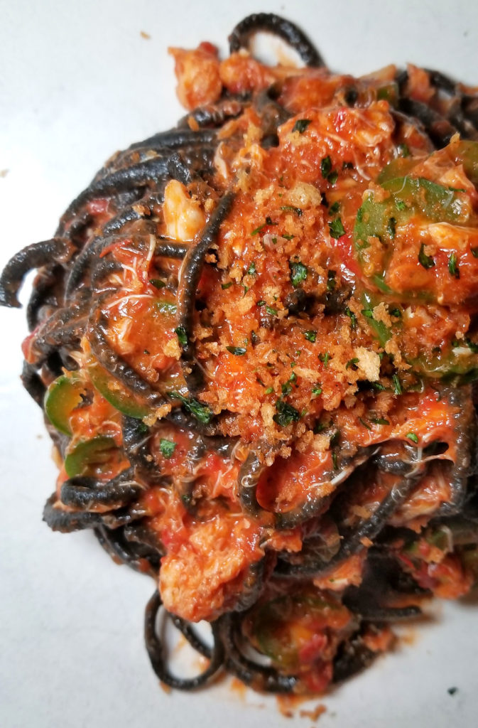 This reminded me of Christmas Eve dinner with my family. Mom always made bucatini pasta with blue claw crabs that we caught ourselves at the docks along the Great South Bay. Ours was usually spicy as fuck though. This one did have a slight kick with some jalapeños, so cheers to that. I’d eat this dish every day if I could.