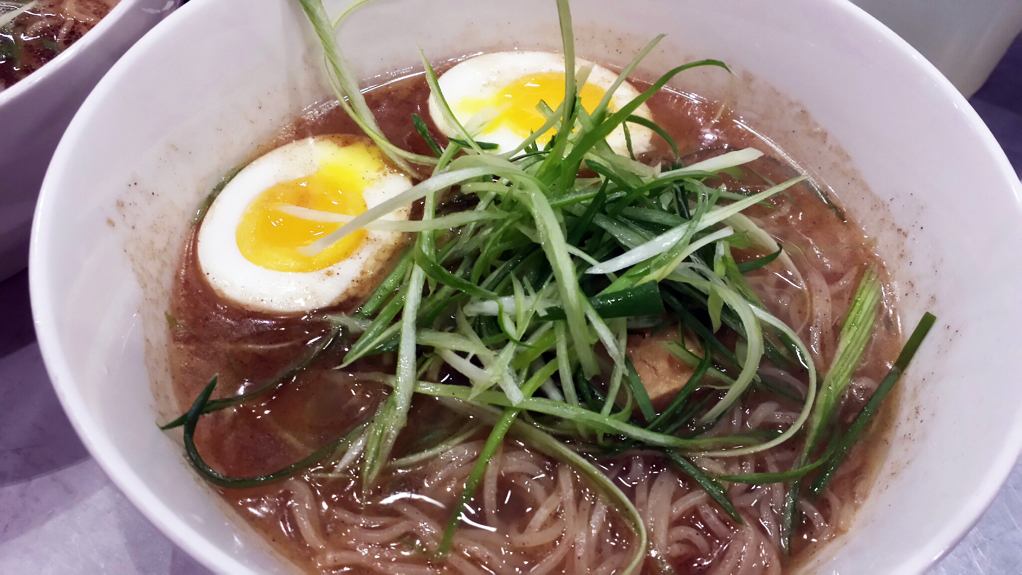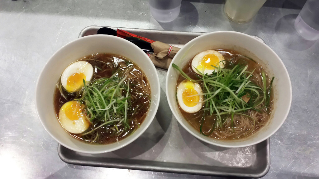 My wife and I tried the Shio and Shoyu styles. They were both good, but they contained green onion cut in such a way that it became overbearing and difficult to pluck off of the noodles. I like a standard cross cut to my scallions. This “long ways” cut sucks. The soup base was good, on the other hand, and the rye noodles were delicious.