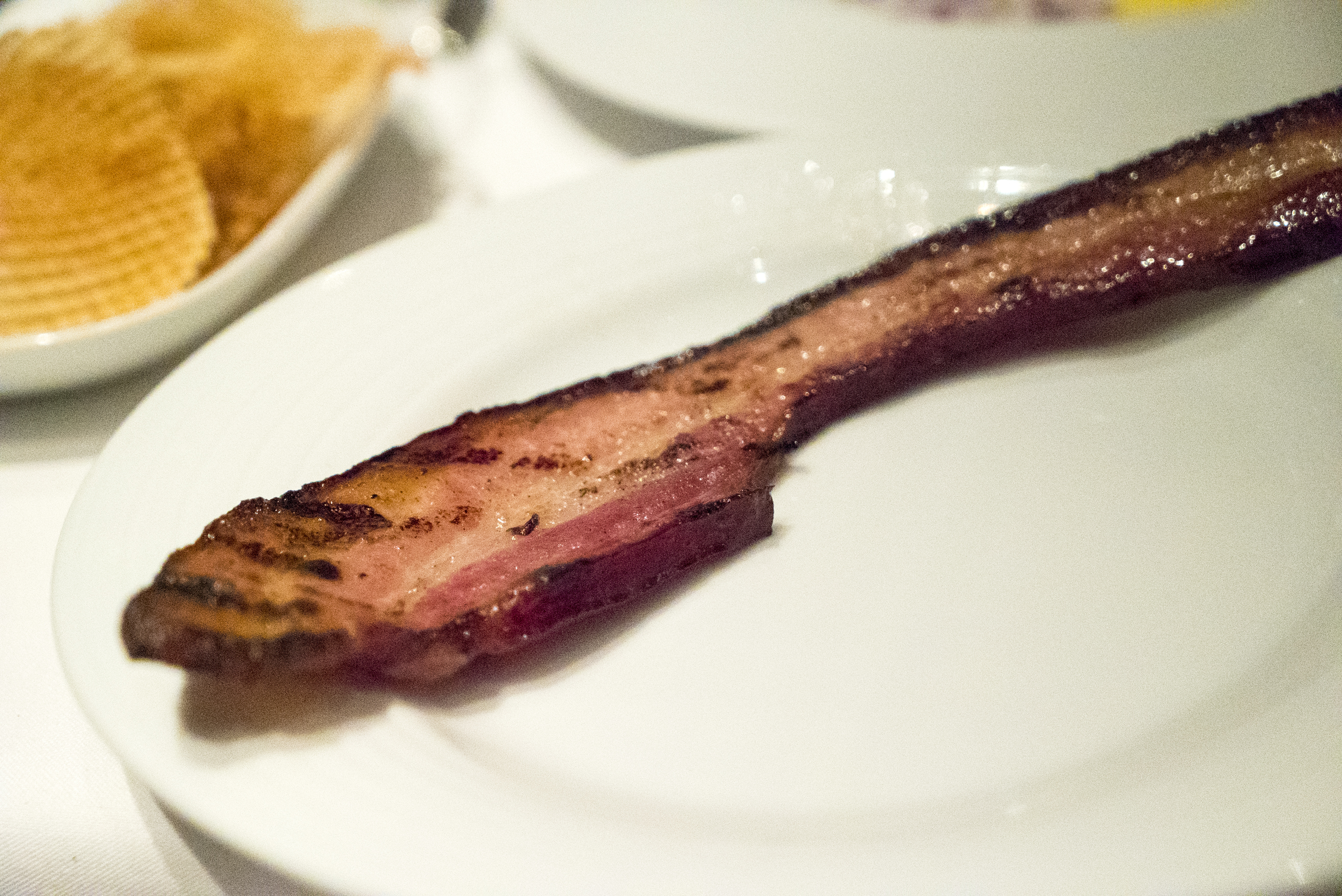 Next up was the bacon. These were nice and thick: we had a strip each. I’ve had better in other places, but this was an excellent way to chase that delicious tartare.