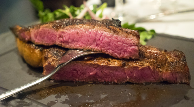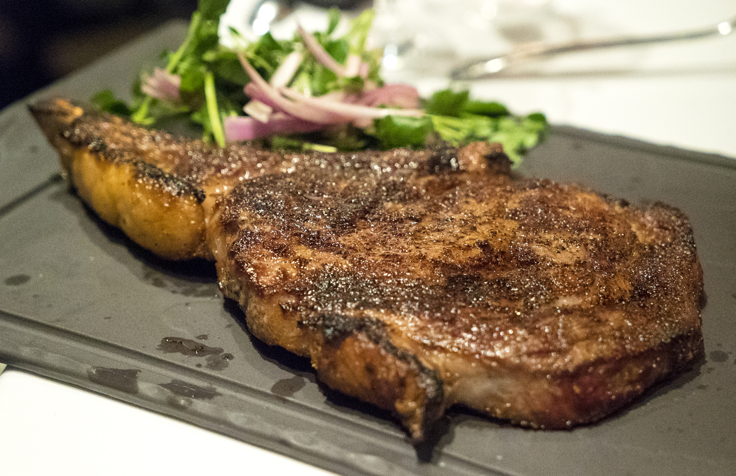 For my main course, I had this delicious, perfectly cooked bone-in rib eye steak. Aged prime all the way, people. So fucking good. Easily in my top steaks. The crust had a great sear. There was a slight amount of bleed-out, but it was not due to lack of rest. It was just juicy as fuck.