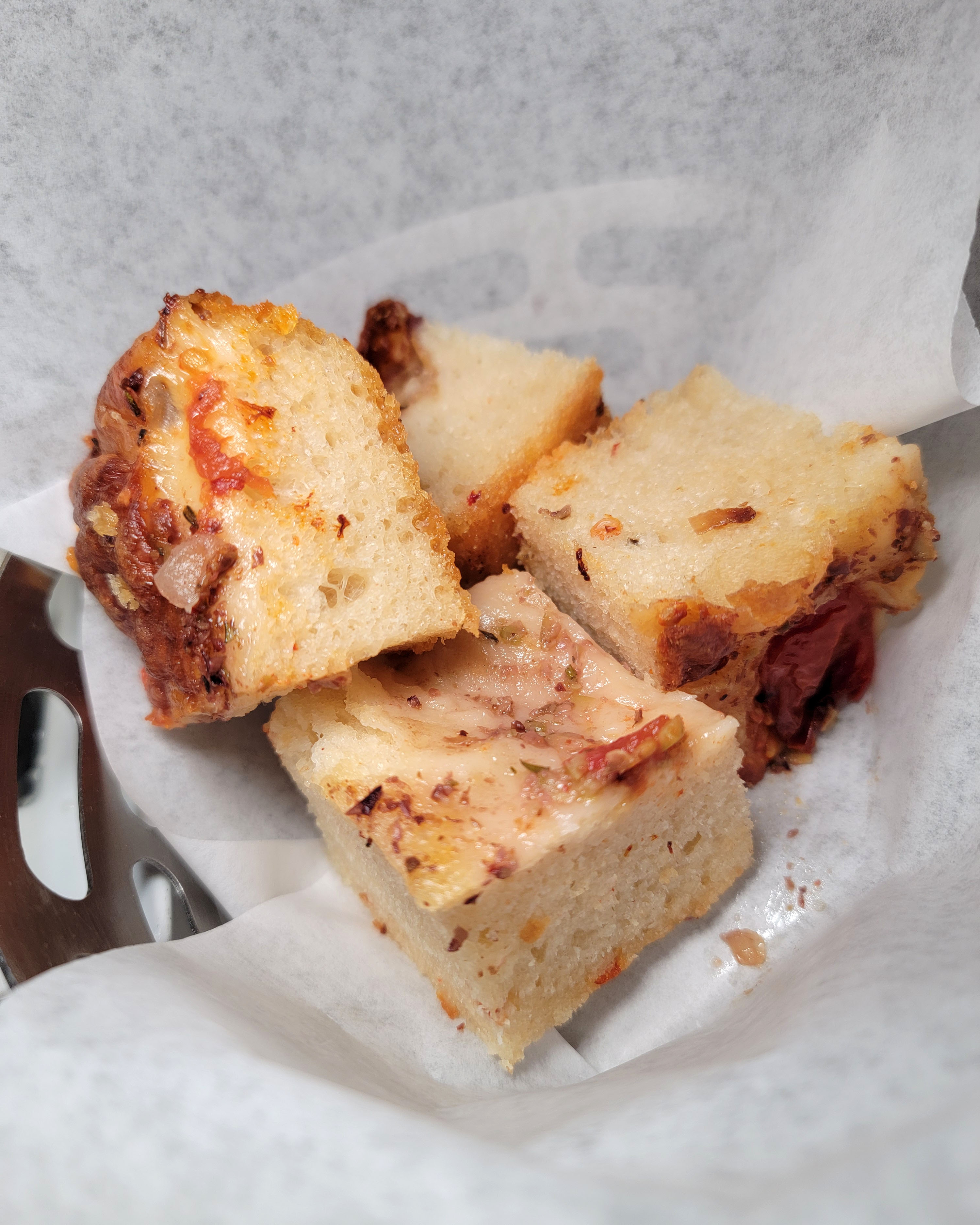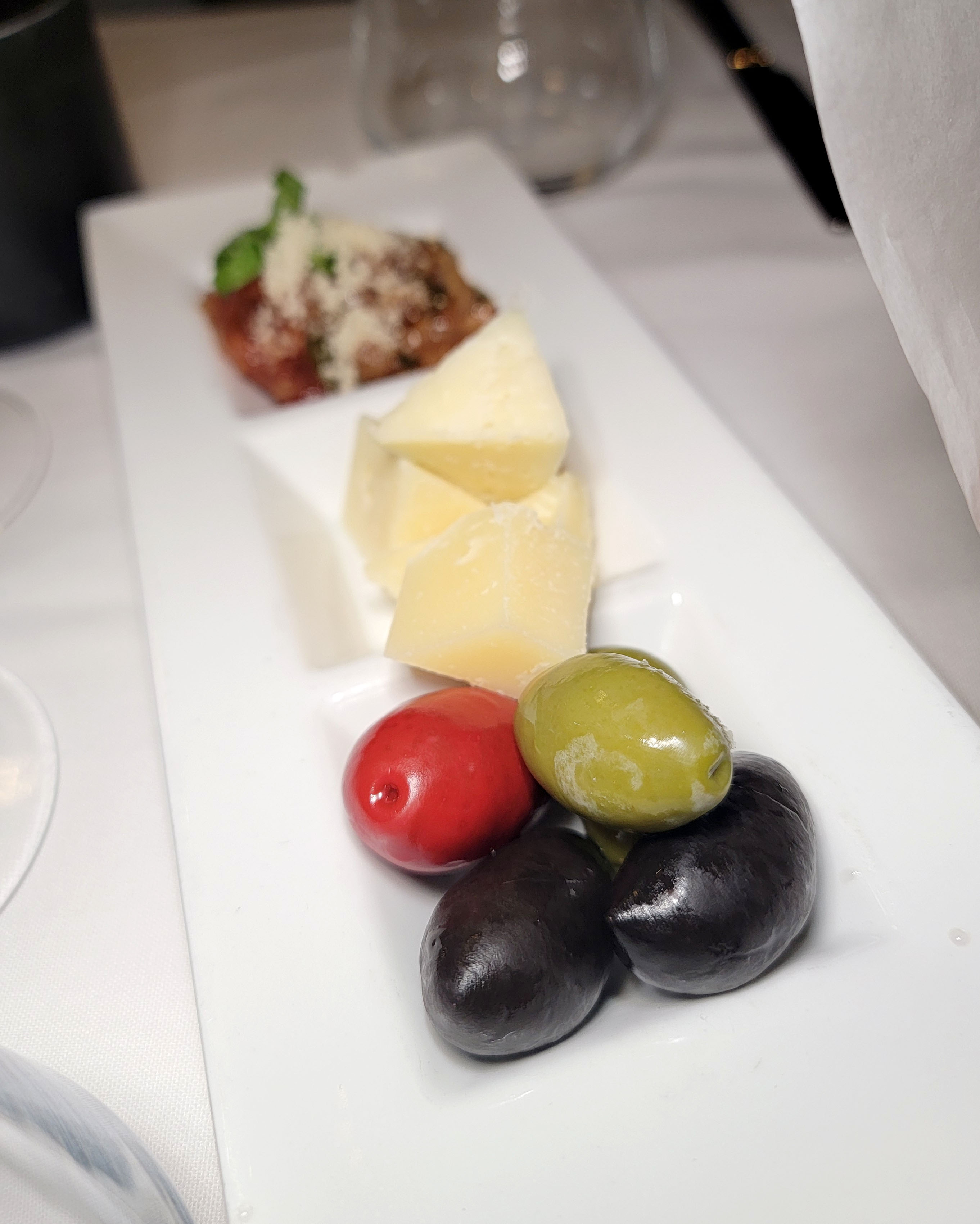 Table bread was a nice focaccia (cold), and there was also a nice plate of olives, cheese and tapenade.