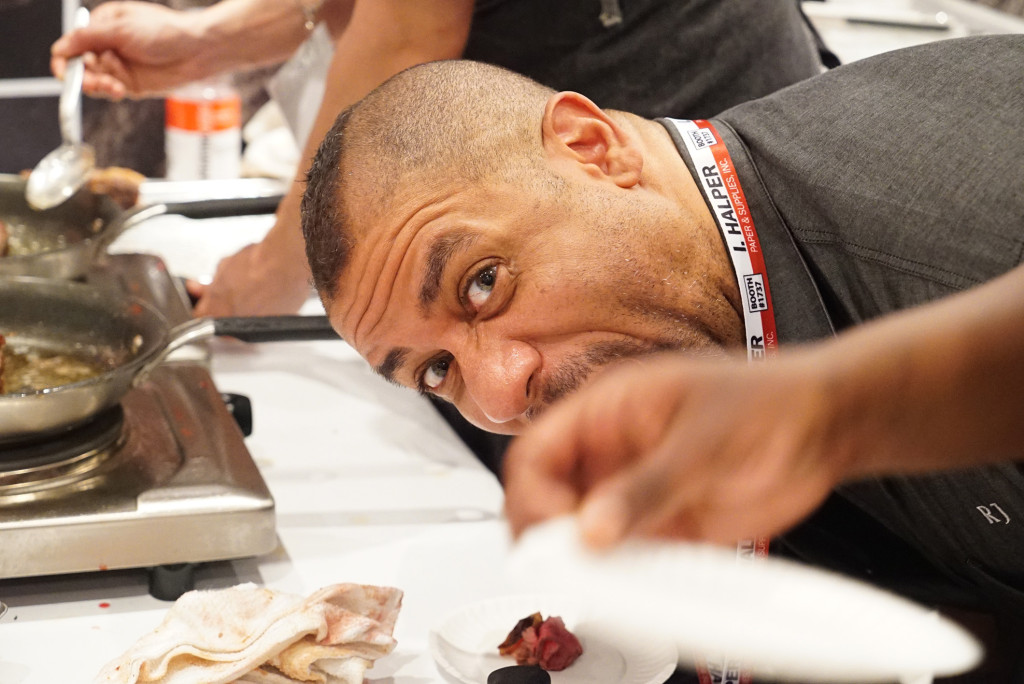 I look up, and instantly recognize this dude from TV. It’s Chef Russel Jackson from “The Next Food Network Star” and Dissident Chef / Subculture Dining fame. He was in the midst of hamming it up for me in this shot with some gnashed teeth, but his helper’s hand got in the fuckin’ way!