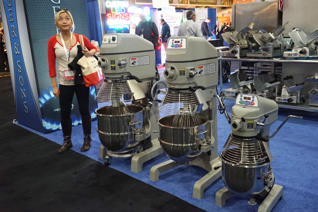 Here’s my wife lined up with some gargantuan-sized mixers: