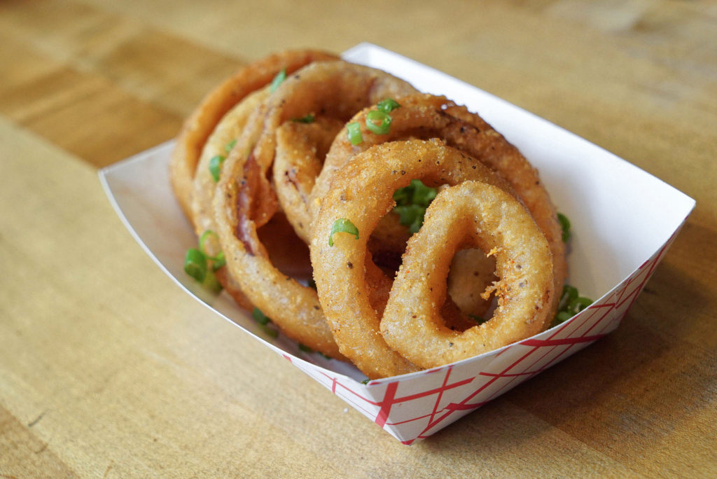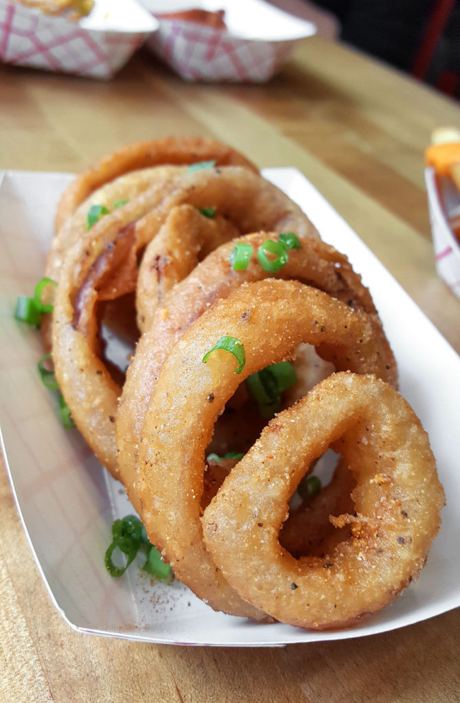 The red onion rings were killer, as were the buffalo cheese fries with bacon, jalapeños and scallions.
