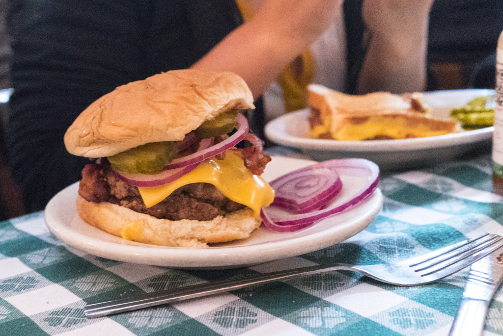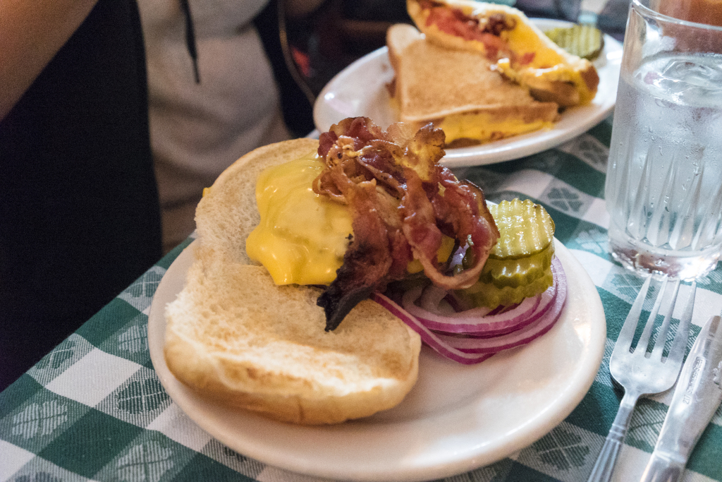 My dad and I had bacon cheeseburgers. Each coming in at $11.50, these fuckers are a bit on the pricey side, especially since they don’t come with fries. I ordered medium, but it came back pretty much well done. I didn’t take a look at my dad’s. Sucks, but it was at least very tasty.
