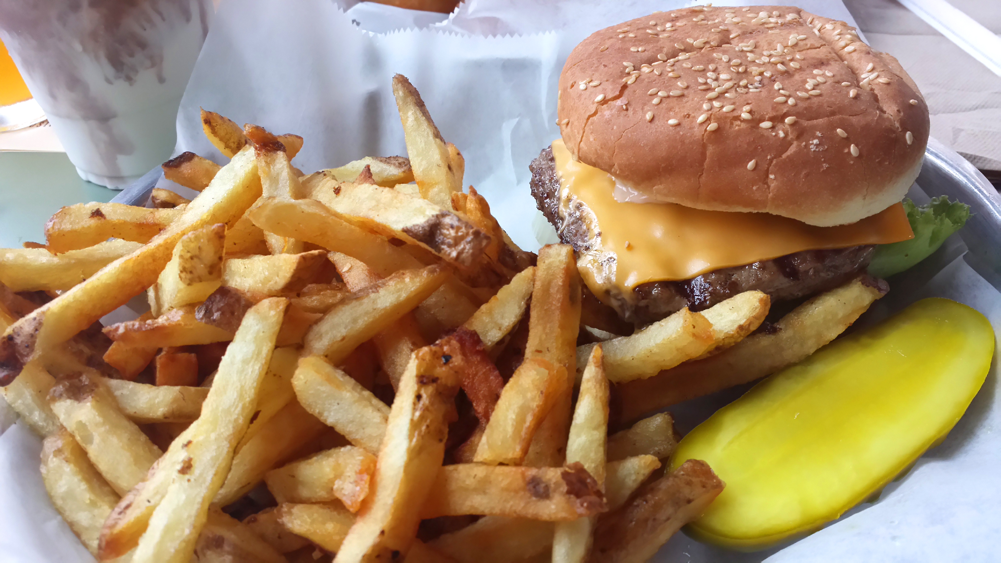 I paid under $10 for two burgers and two shakes or fries. My buddy and I mixed it up a bit. We got one shake, one fries, and added an order of o-rings. It was also two for one beers during happy hour so we nabbed a pair of fucking Blue Moons as well.