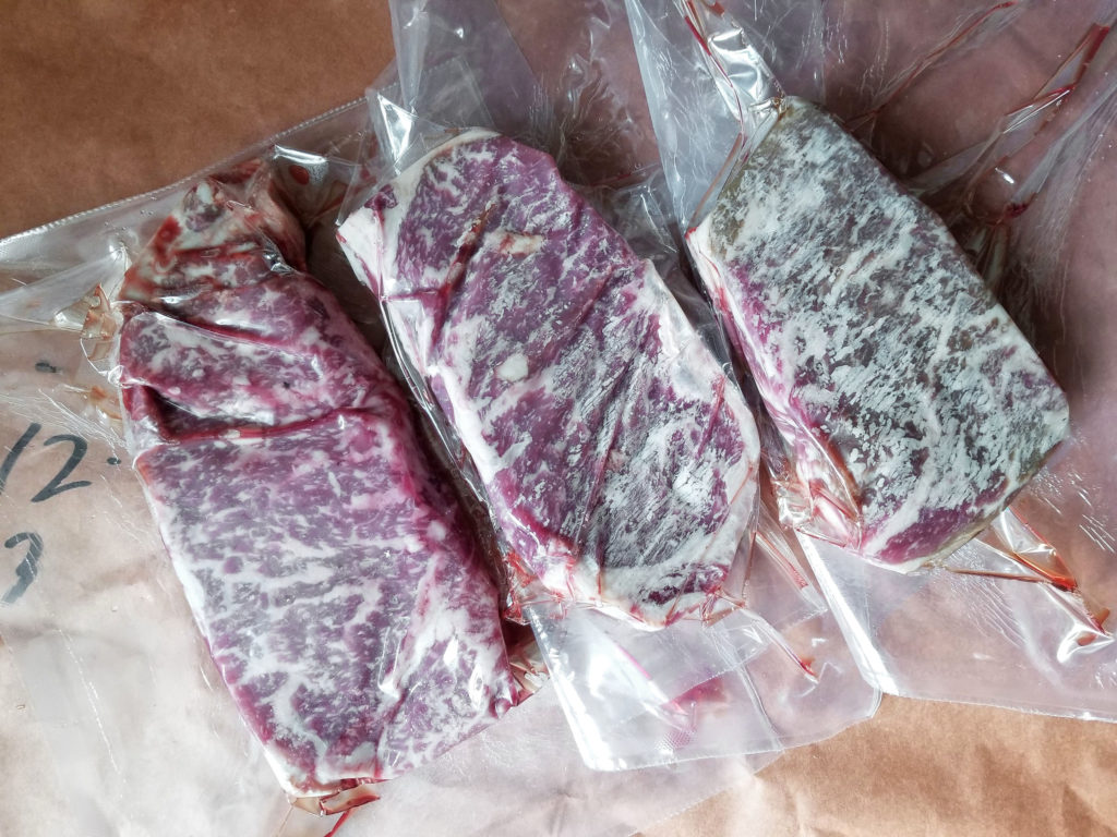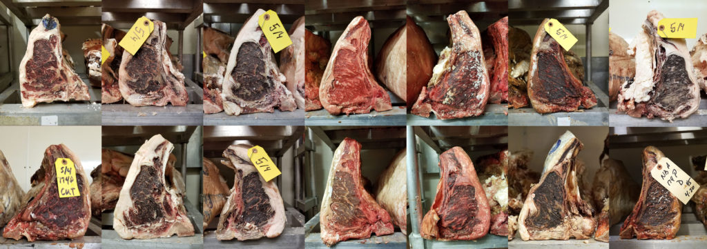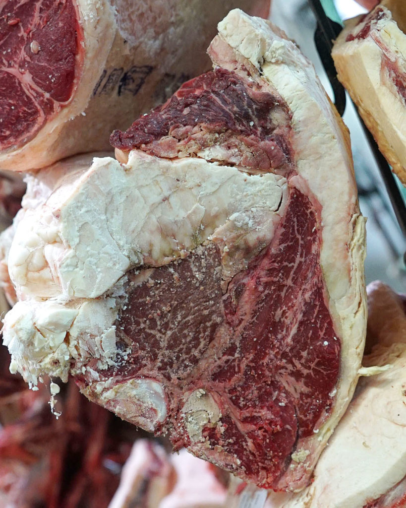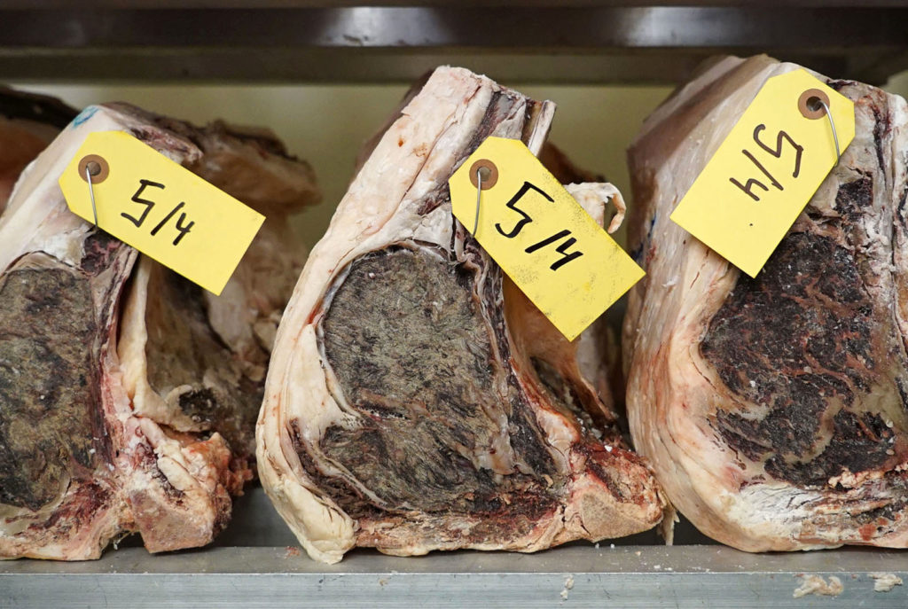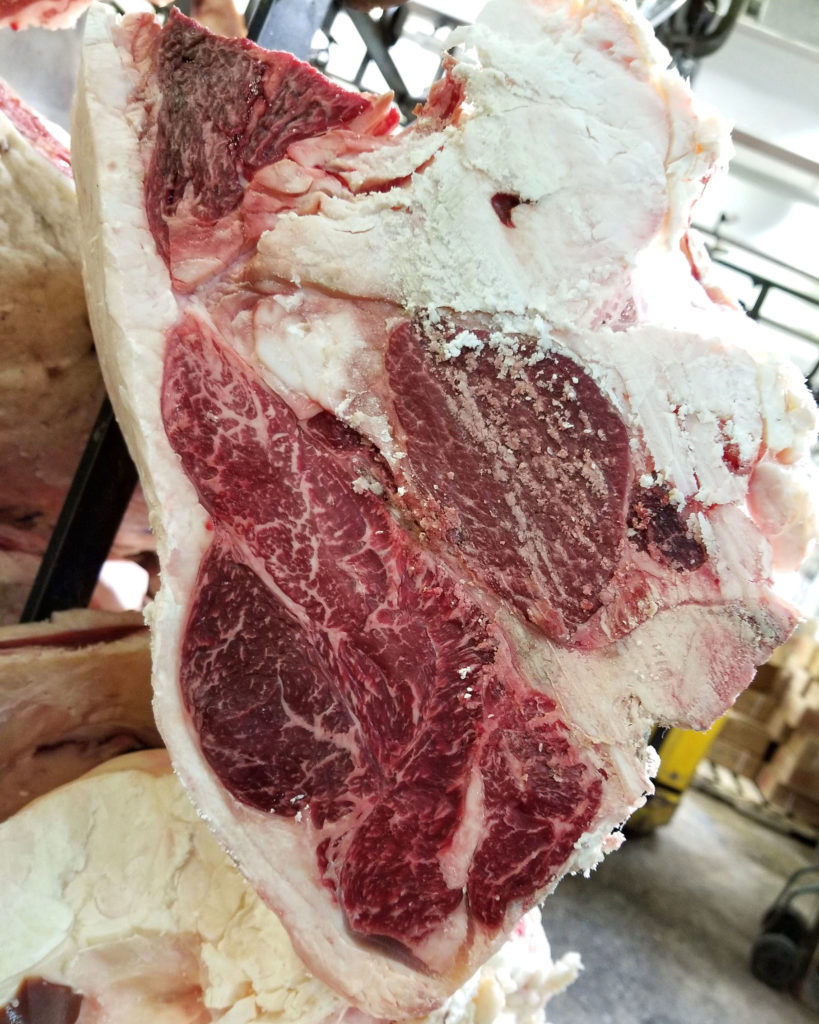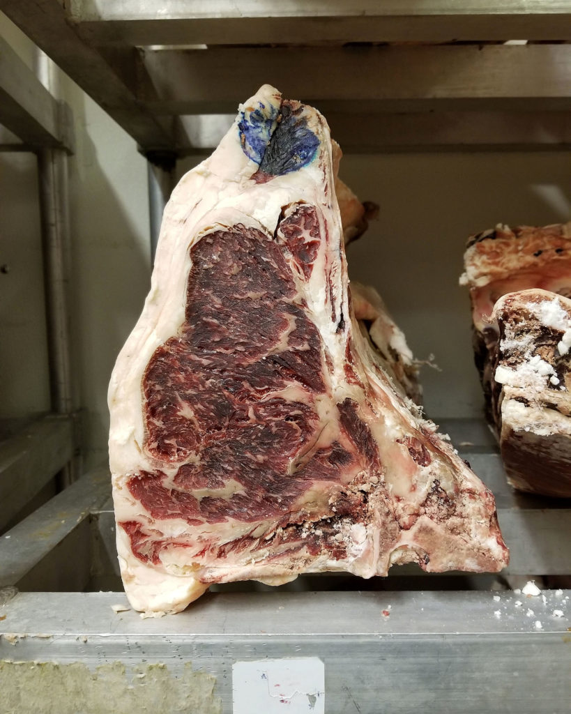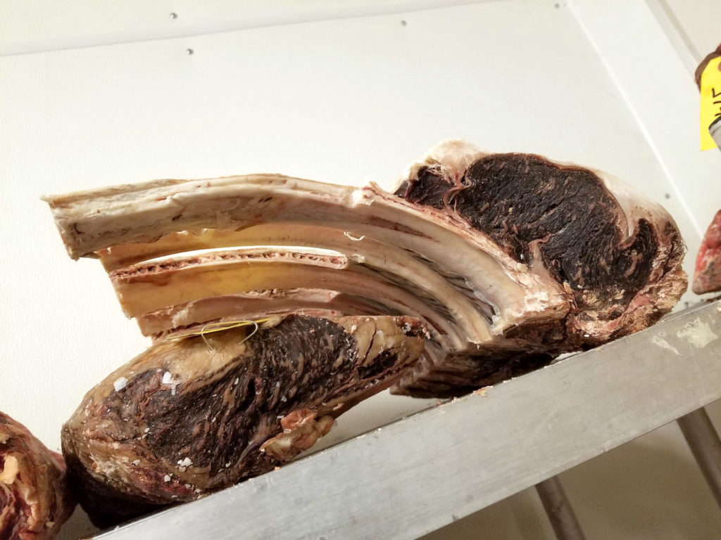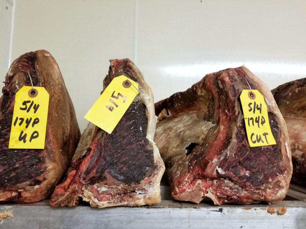 As the business continues to grow, Grant says that they plan to open up a second, much larger dry aging room off the back of the facility. Take a look at some of the beautiful pieces that were aging when I was there: