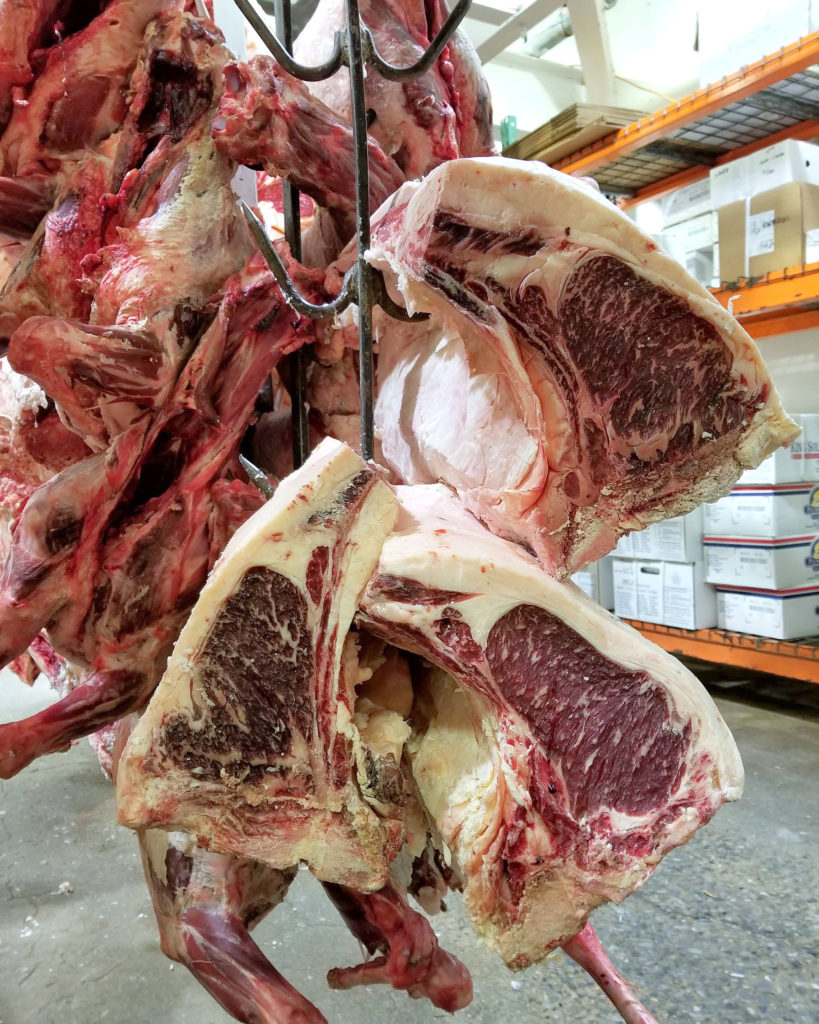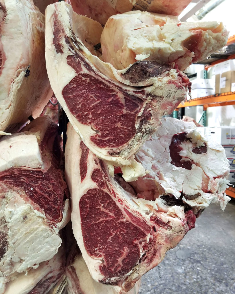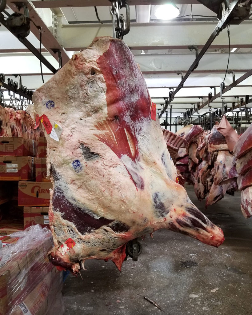 Not many purveyors in the city are getting fresh carcasses like this anymore. There are maybe four of them. Most places are bringing in boxed beef and then further portioning that out for their customers.