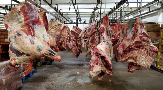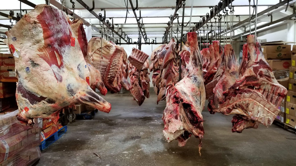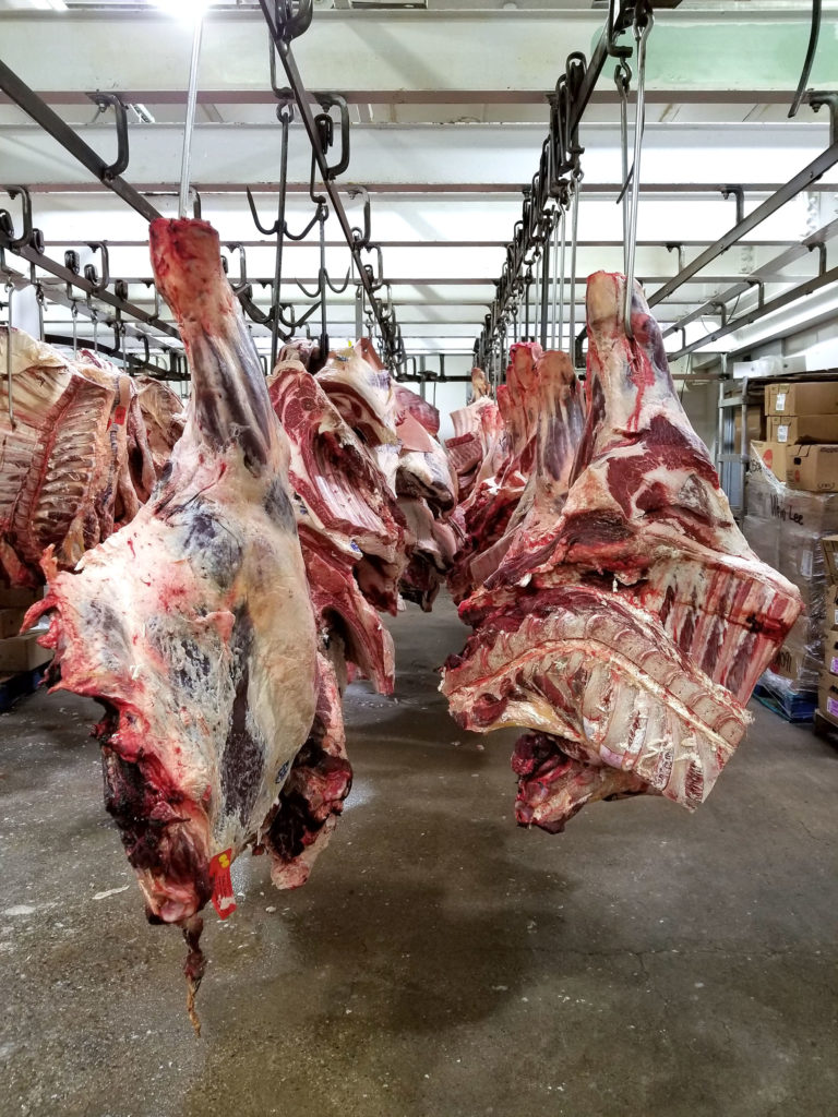 You probably noticed that massive slab of beef hanging behind us there in that last photo. Here it is all by itself: