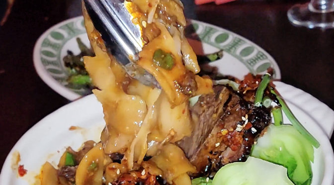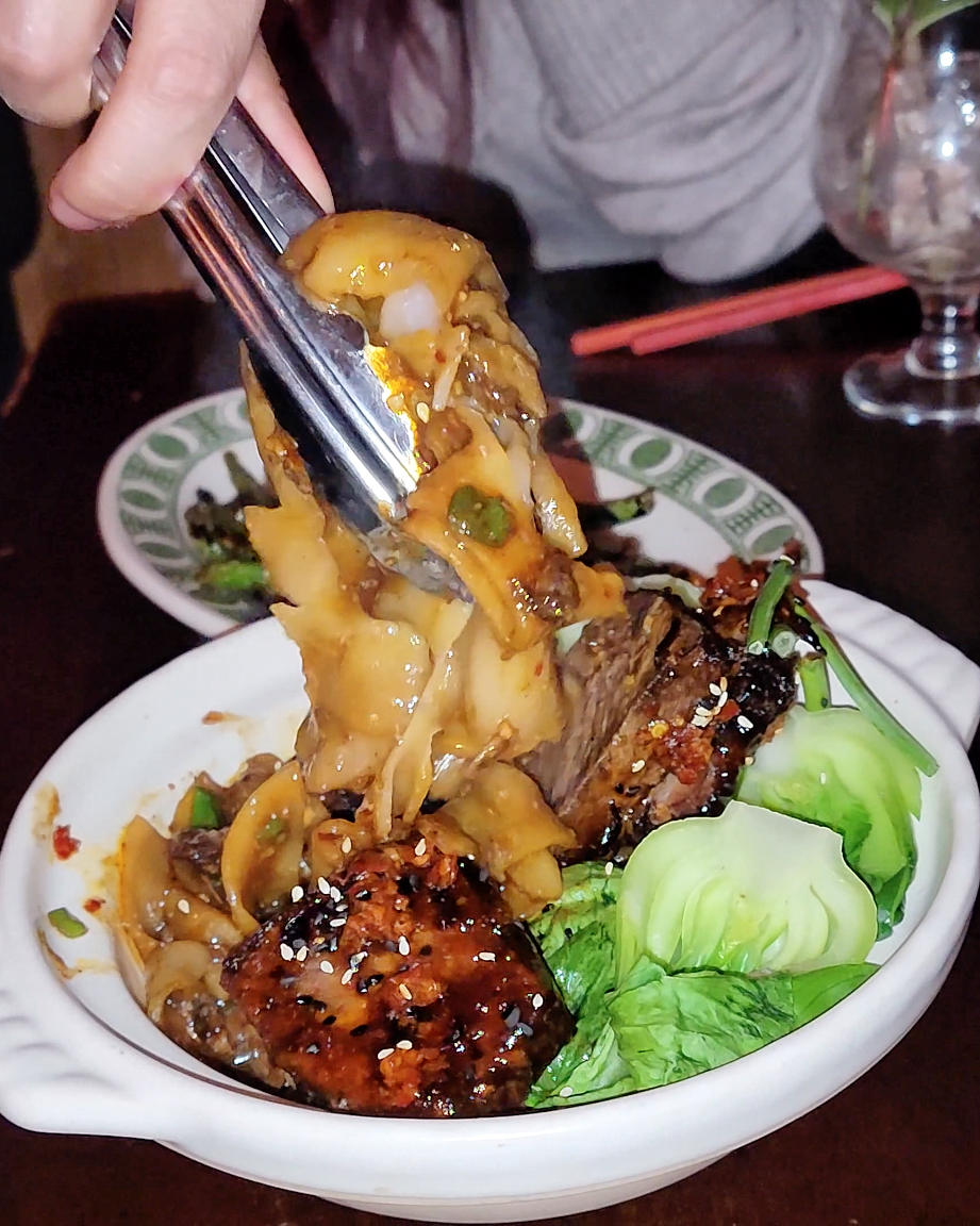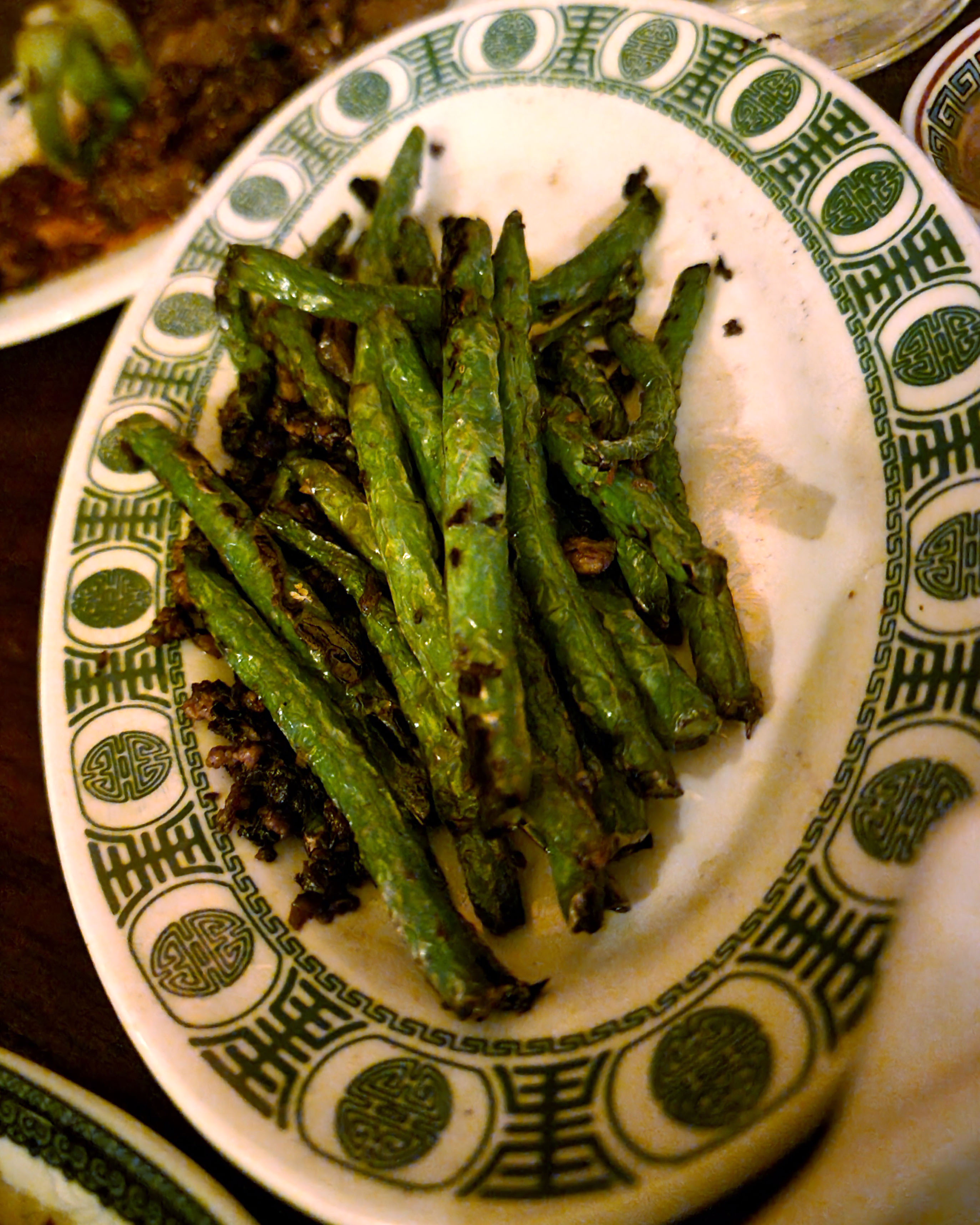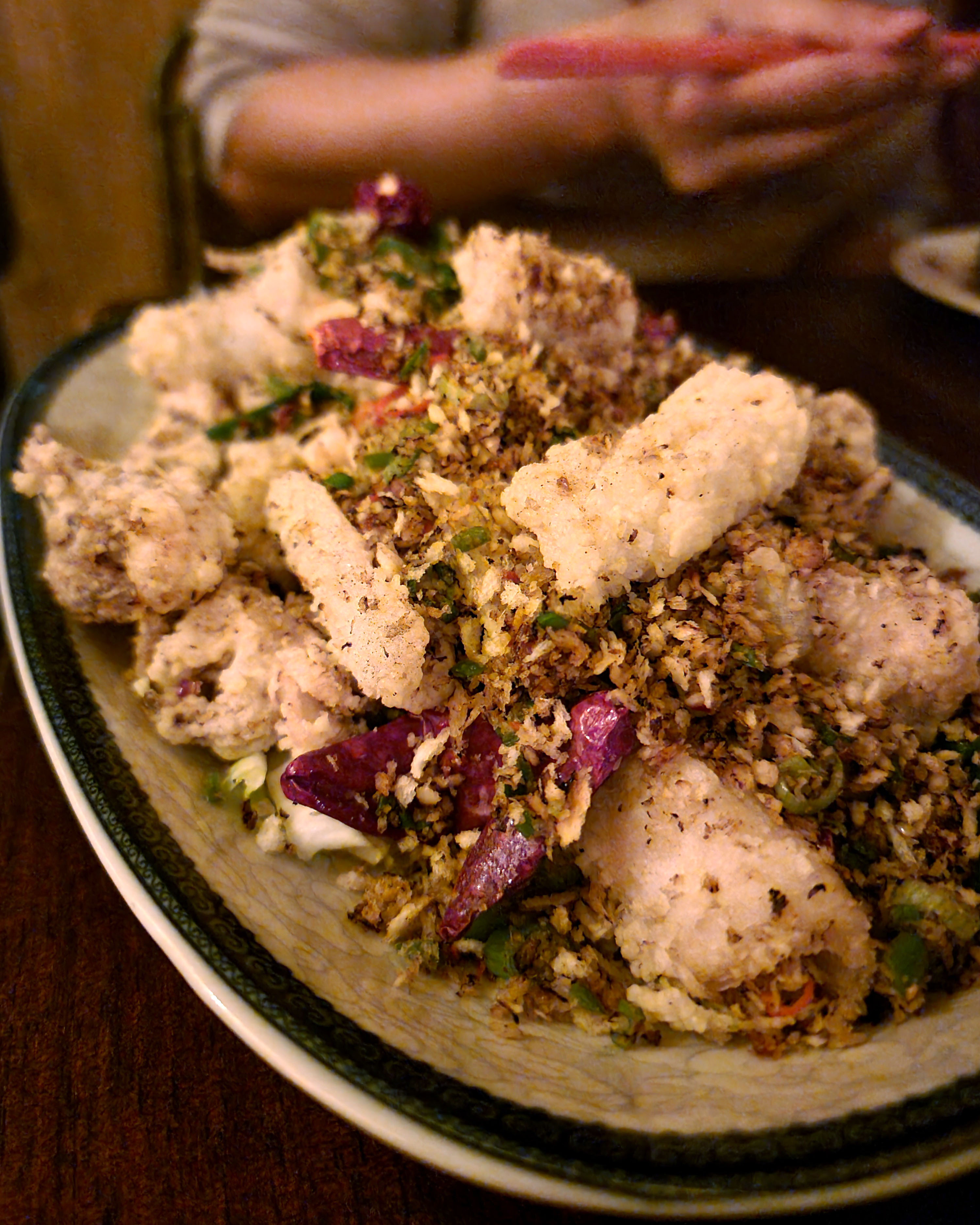 Next up, short rib beef chow fun, dry fried string beans, and crispy Szechuan calamari. Of these, the string beans were best, with the calamari close behind. They just needed to be a bit more crispy.