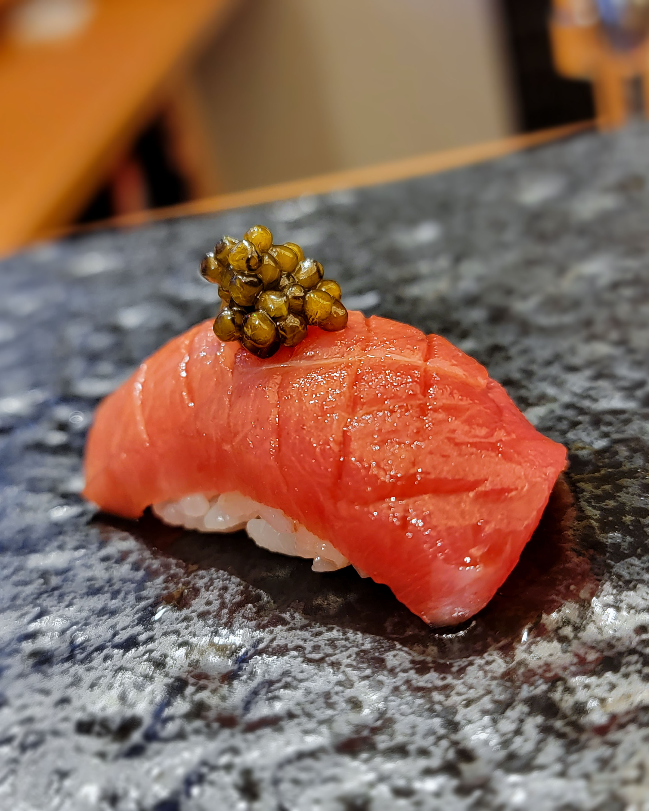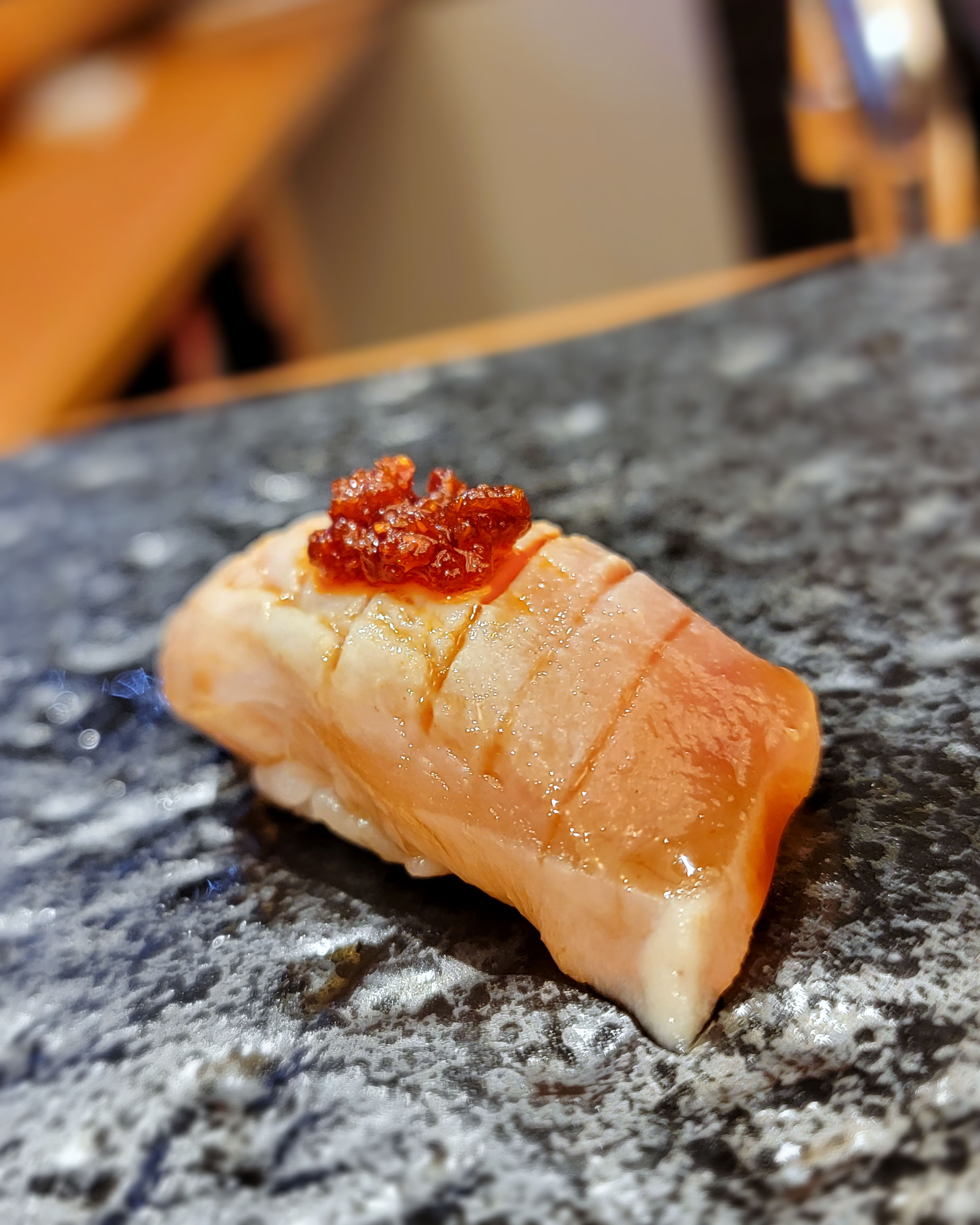 While this doesn’t quite break the top five for low cost/high value omakase joints, there were definitely some highlights, like the albacore with chili garlic crisp…