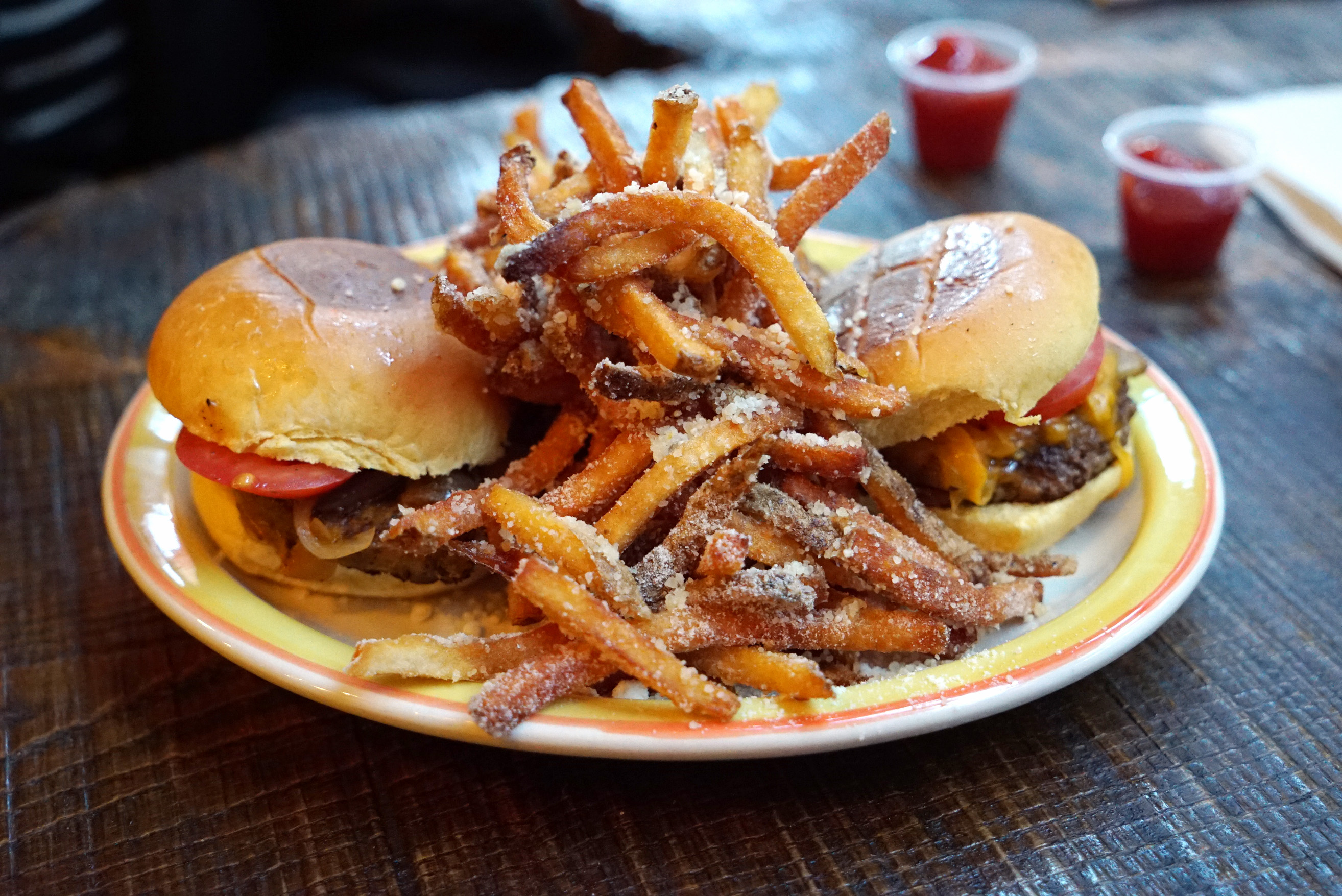 La Frite is a little french fry joint on Macdougal just above Bleecker. They have a great $8 special that gets you two sliders and an order of fries. Not too bad.