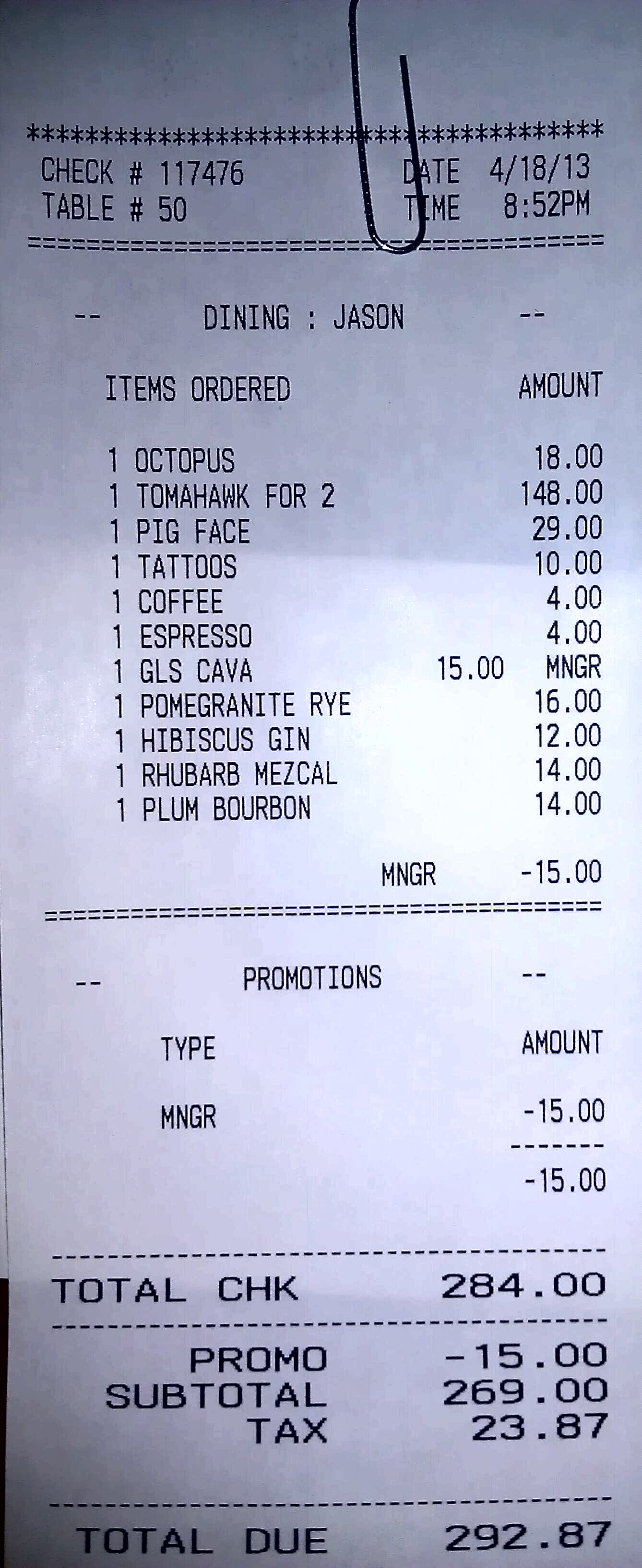 We were also given a nice manager’s discount on the bill!