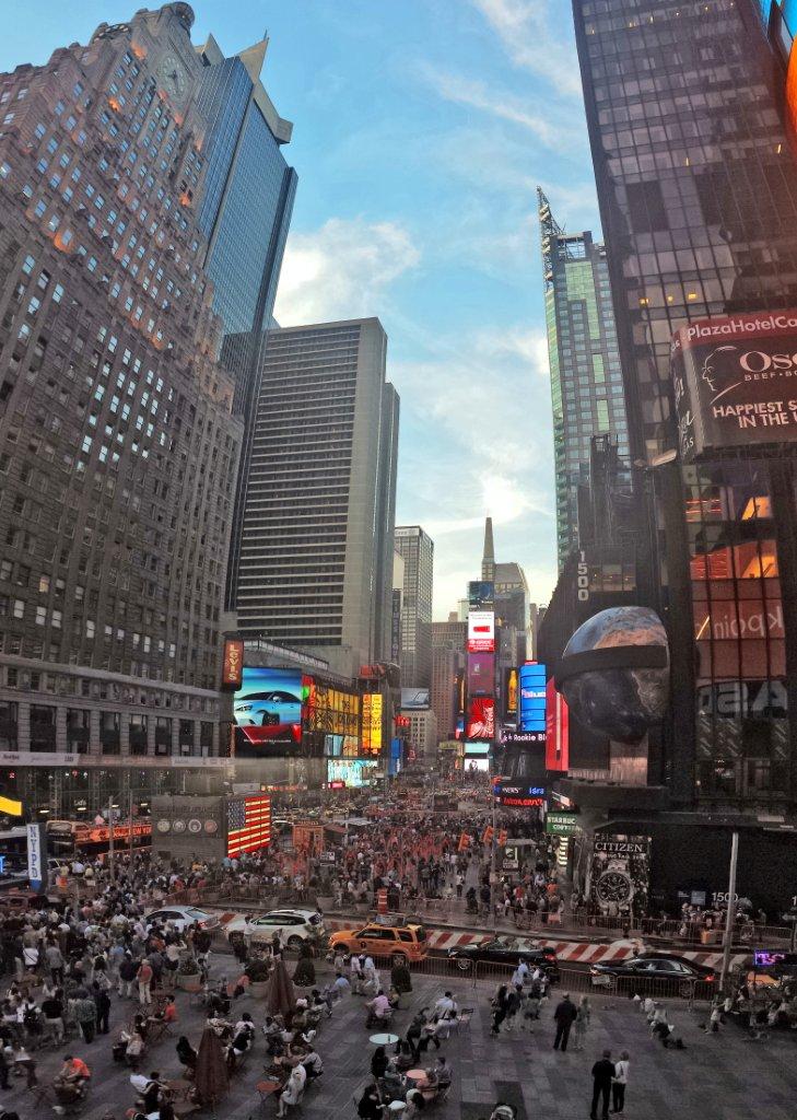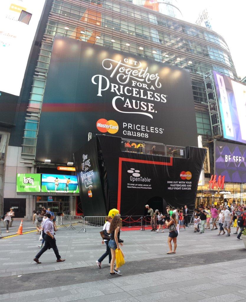 My wife got these crazy passes for a special dinner beneath a billboard, two stories up above Times Square. The meal was conceptualized by Marcus Samuelsson, as he was one of the sponsors via his Harlem restaurant. Anyway, for $50 a head we got a five course meal, and all money is being donated to fight cancer, so it’s for a good cause.