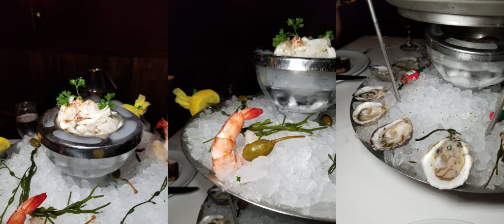 The chilled seafood was pricey but really delicious. We built our own tower with three jumbo shrimp, colossal crab meat and a dozen oysters.