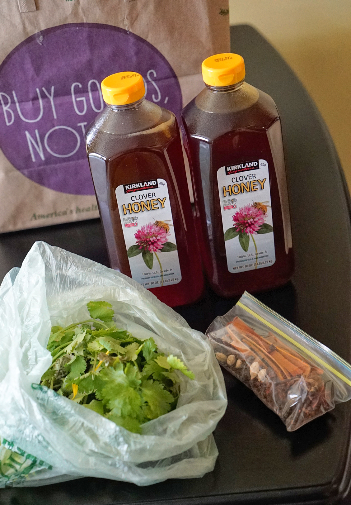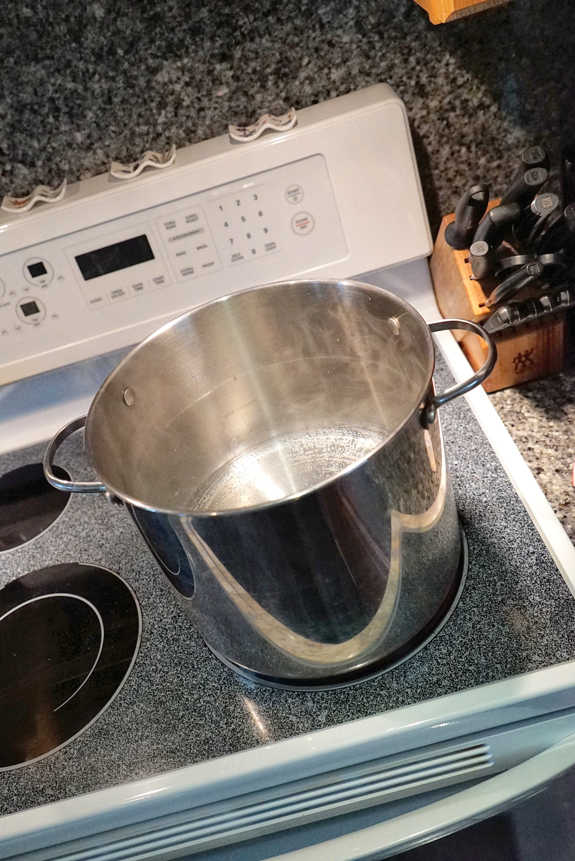 TIP: You may want to put your honey bottles into some hot water so the honey is easier to pour out, and you don’t have to burn your arms while waiting to pour all that honey out over a boiling pot of water and steam.