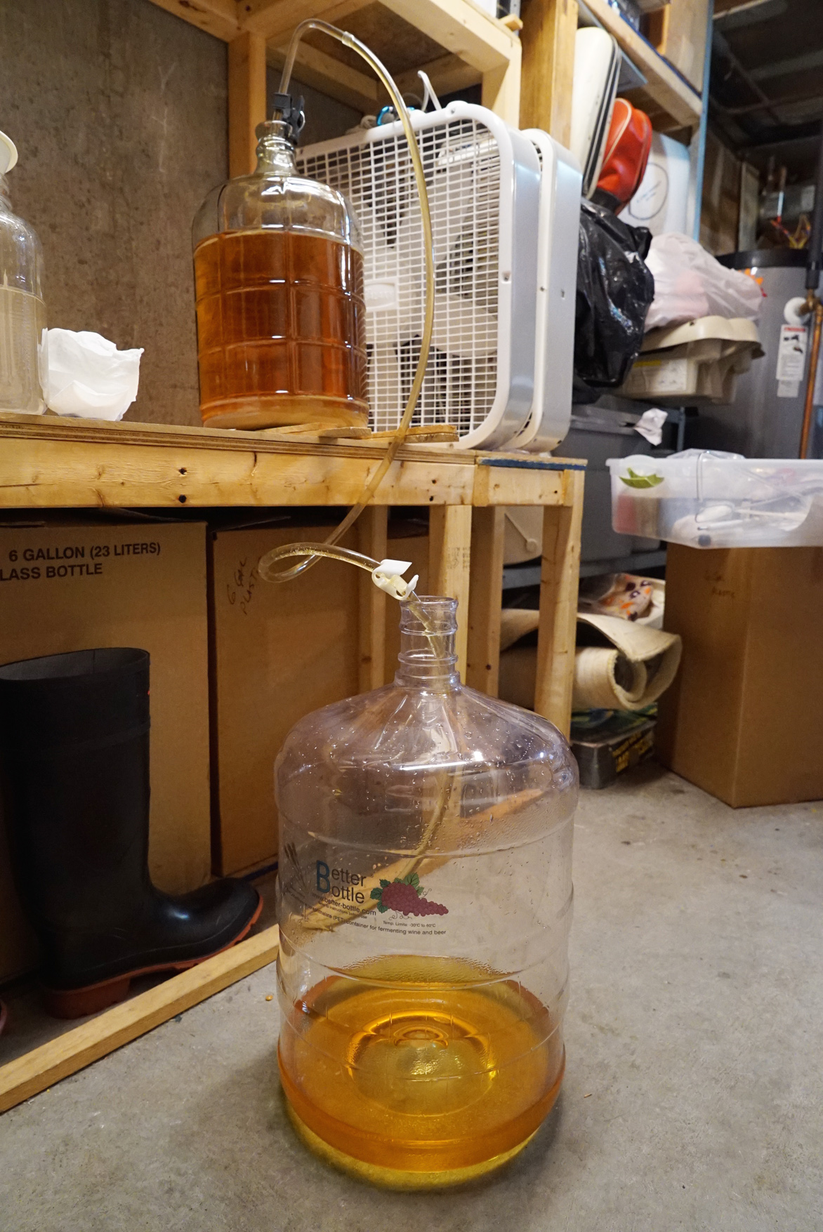 UPDATED PHOTOS – the brown, murky liquid in one of the above pictures (slightly blurry) has now fermented into this golden-amber beauty: