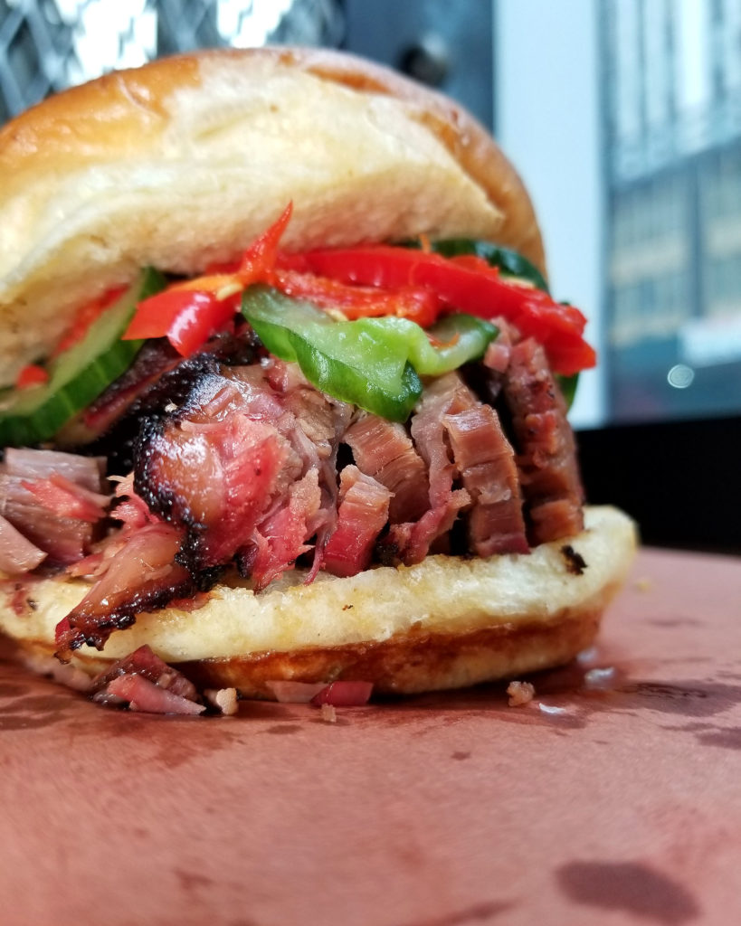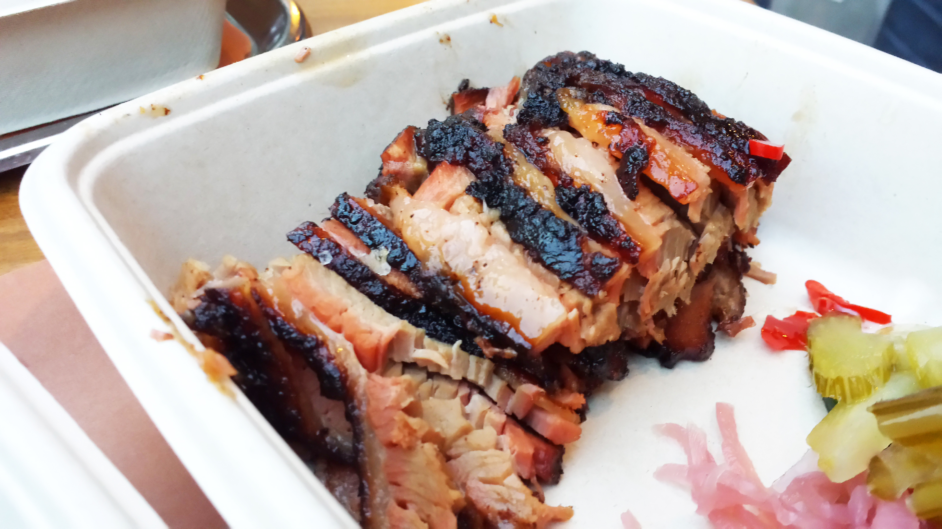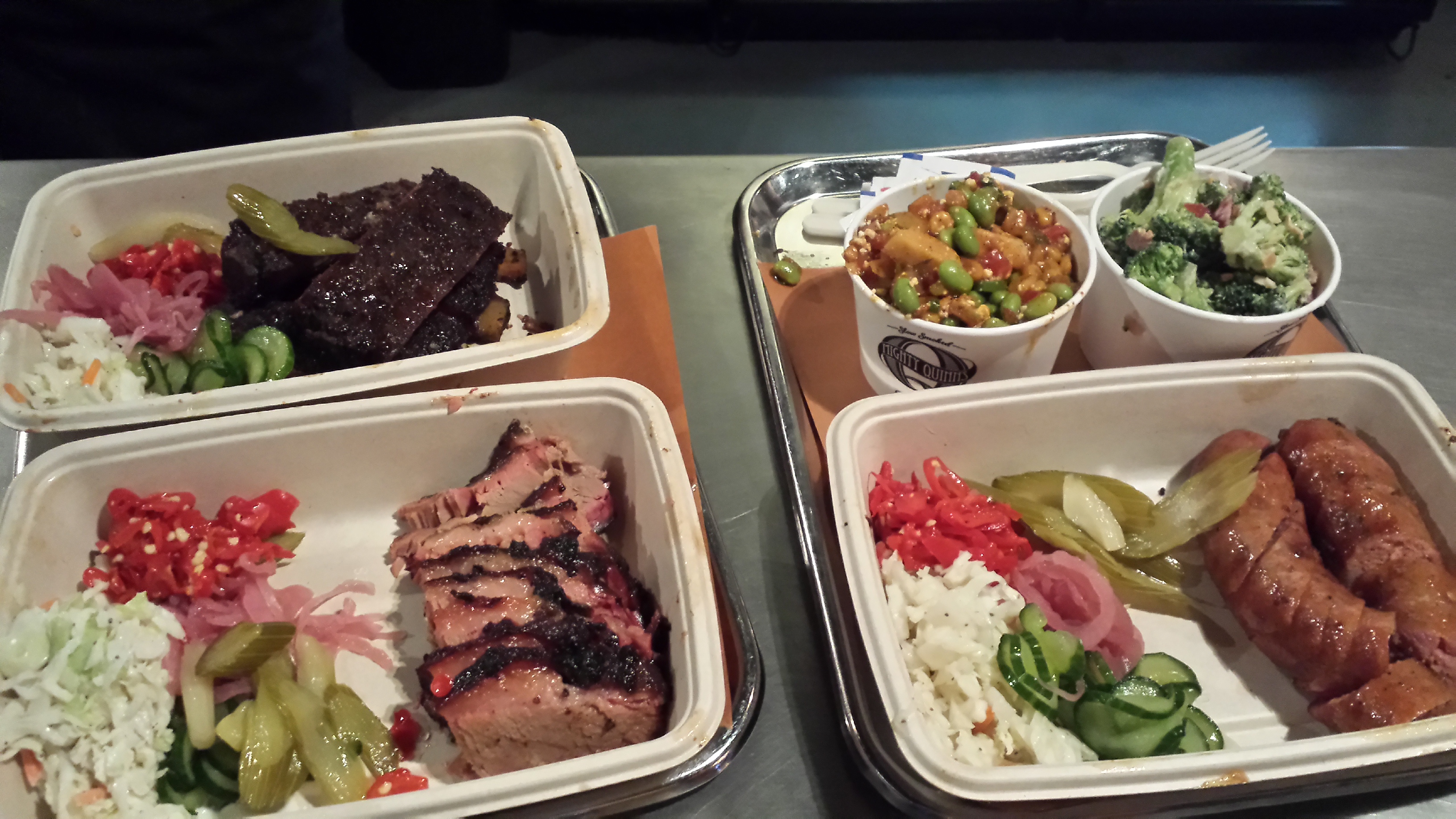 This recent addition to the BBQ scene sits on Second Avenue and draws a pretty big line at mea time. The set up is basically like any old fast food joint, where you stand in line, place your order, and tun wait to carry it away on a tray. The food is fucking delicious; everything from the sides to the mains. My buddy and I tried some sausage, some brisket, some ribs and a pair of delicious sides. Check the food porn – the cool part is you can eat street side: