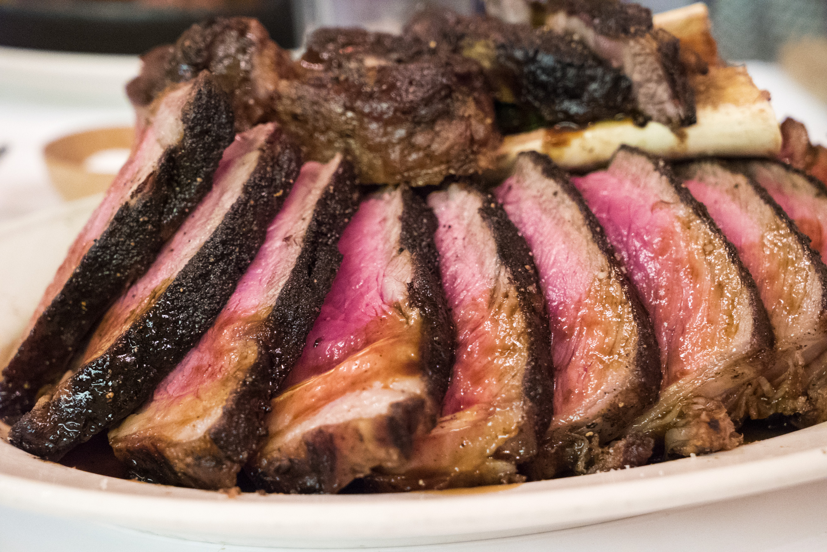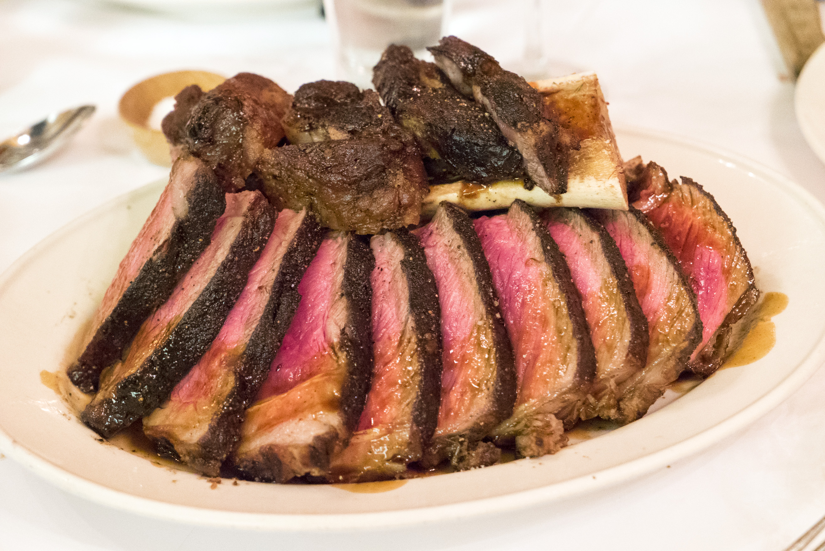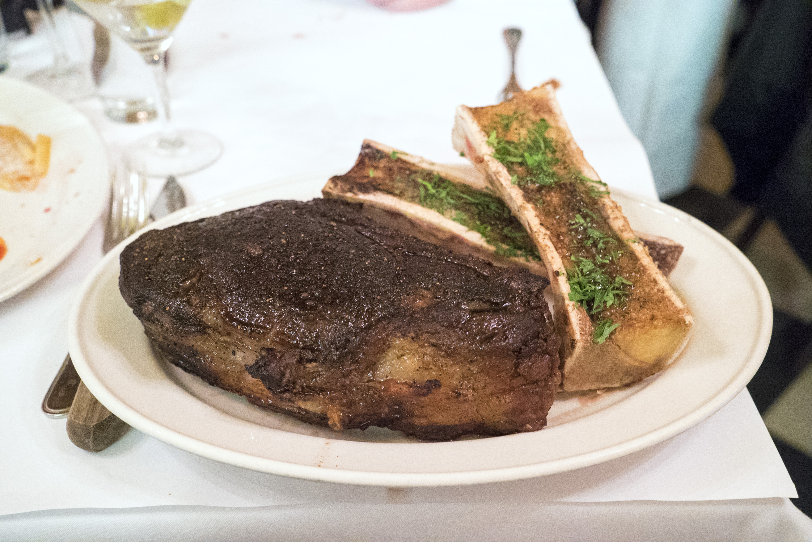 The three of us shared both the cote de boeuf and the pork shank. Take a look at this fucking delicious chunk of beef. It comes with two hulking marrow bones and a wedge of salad. Who cares about that bullshit? Not me, so I didn’t photograph the salad. Anyway they present it to you like this before they take it back to slice it up: