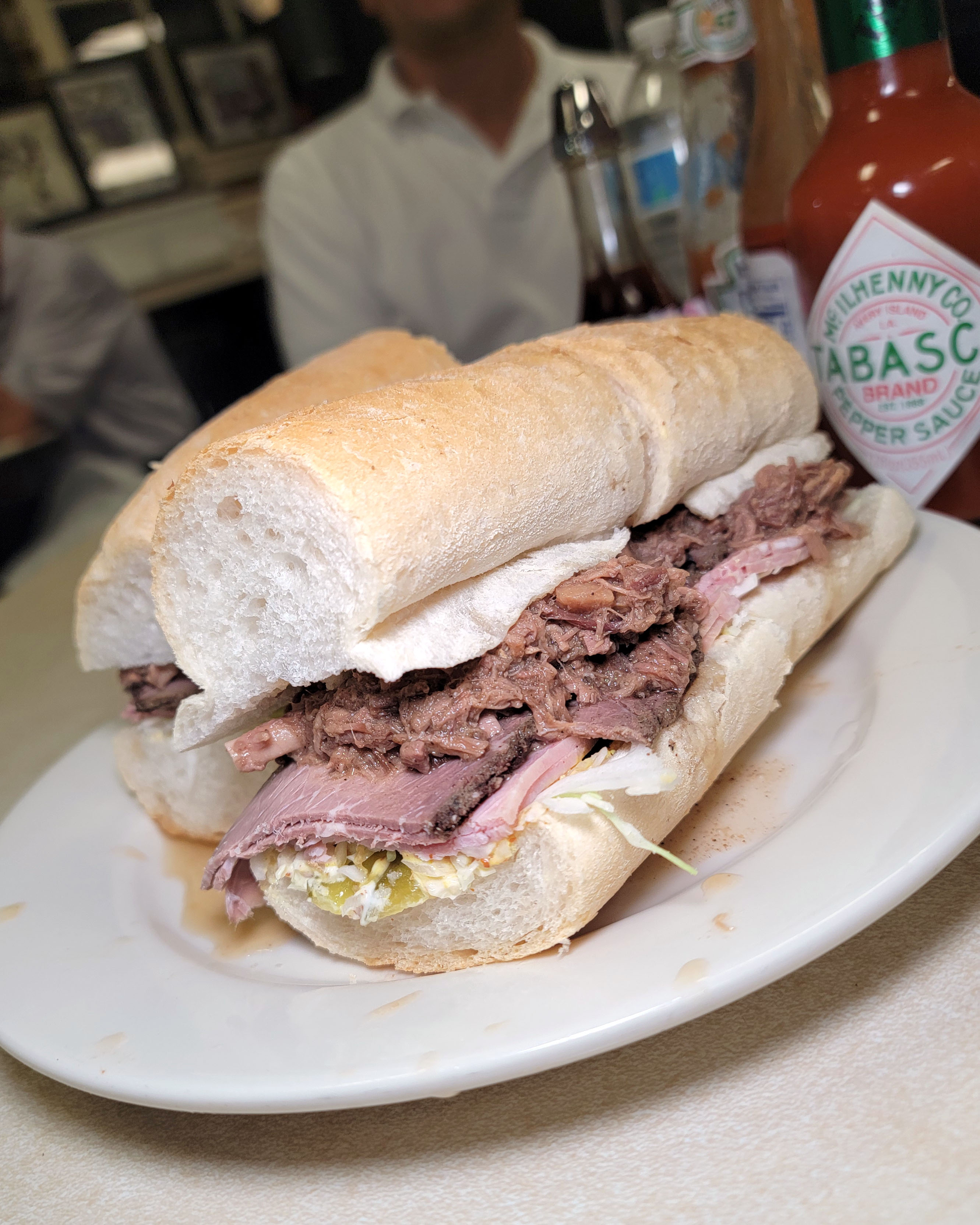 They’re known for their po’ bouys, so I had to try the Famous Ferdi special: a po’ boy packed with baked ham, roast beef, debris and gravy, served dressed.