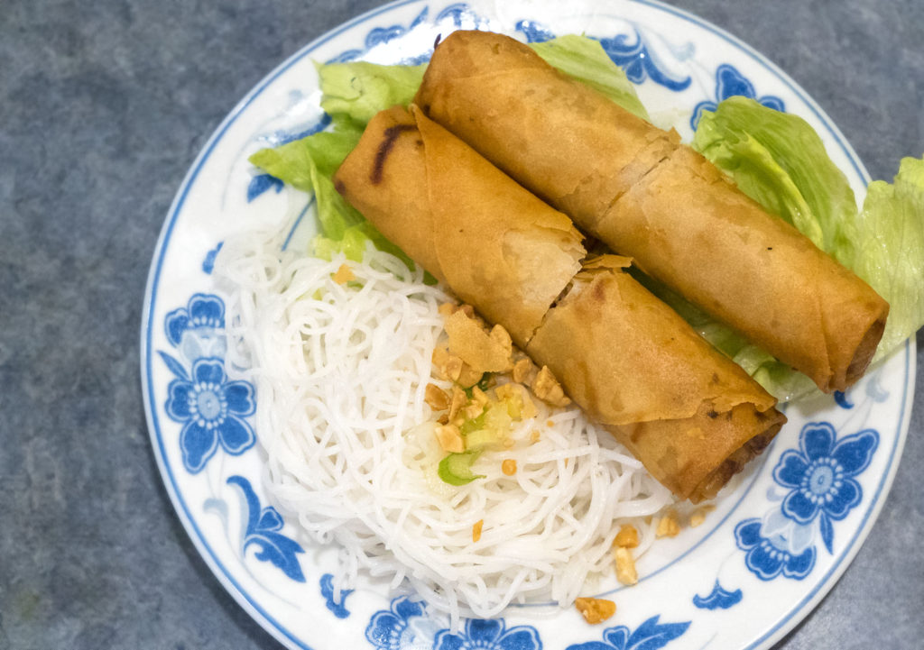 So we ordered up a bunch of our regular favorites. First were the summer rolls and spring rolls. The summer rolls (goi cuon) were great. The ingredients were all nice and fresh, with good shrimp and pork inside.