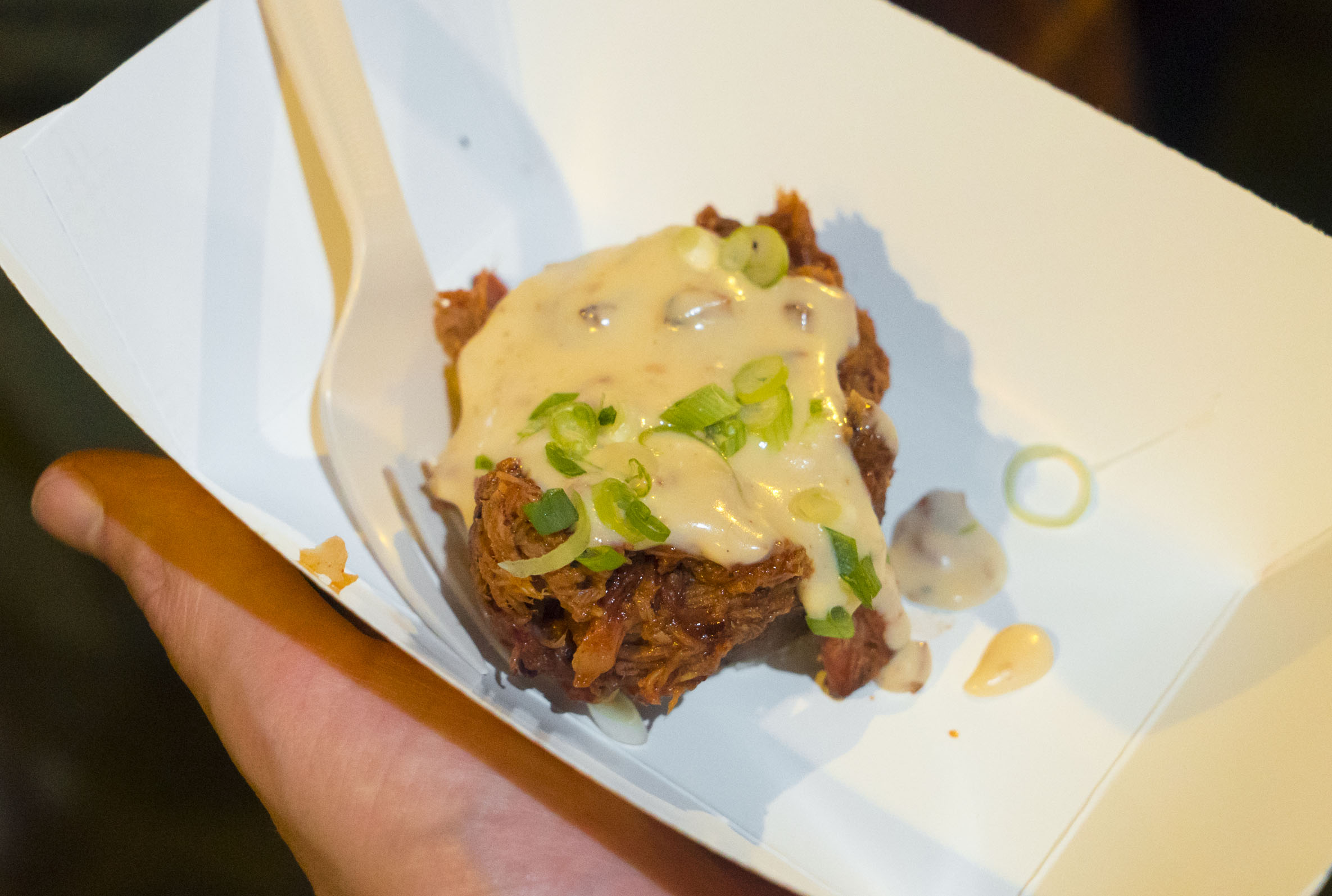 Tchoup Shop struck an amazing balance between sweet and savory with this crab and pork meatball slider. It had a hint of fish sauce to give it a distinct Thai or Vietnamese influence too. Jay put his chip on this as the best of the night.