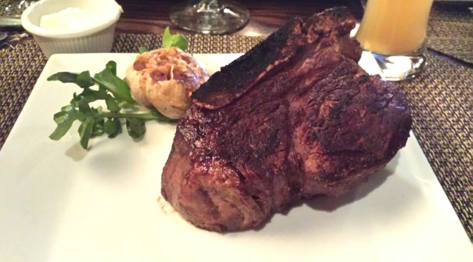 Before we even came here, I knew what I was ordering because I looked at the menu online. I’d never had oysters rockefeller until now. I was always the kind of guy who ate them raw and raw only. Cooking an oyster is blasphemy! Sadly I have not turned a corner; I didn’t like the oysters, but everything else was pretty good. The oysters had some bits of shell in them, and the topping was just a blob of creamed spinach – no special care was given to make them different. My wife had the tuna tartar, which was very nice, served with avocado mixed into it, but it was not as good as Primehouse’s take on the dish. To go with the steak, of course, we had creamed spinach; it was just average: nothing to write about (though I just did). The steak came with a mound of fried onions, which were nice and crisp and flavorful. We also ordered the “Kobe” slab bacon, which was sort-of out of place based on the flavor profile. It was really charred, smokey and piggy. It had some rubbery fat on it, but it was really delicious. It just felt so “BBQ” that it almost seemed like it was from a different restaurant. It was tough to mix that flavor (which was awesome by the way) with the steak flavors. Tots were crispy and nice – a fun alternative to fries. For dessert we had the drug store old fashioned sundae. That was pretty yummy, and I found myself continually digging into it even though I was stuffed.