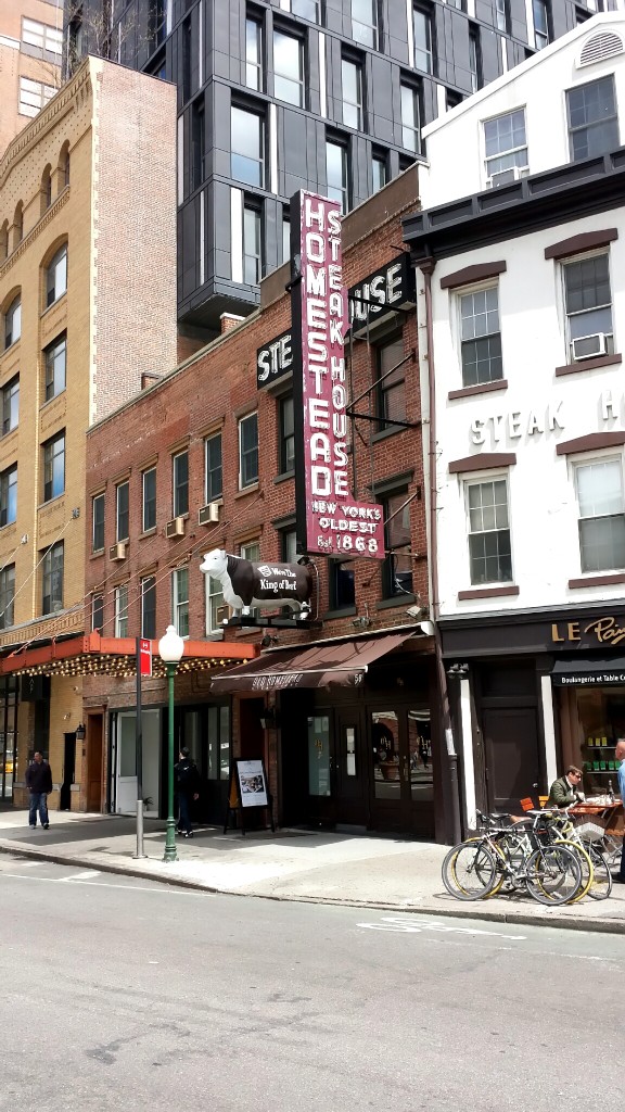 My wife, who is awesome, took me here for a birthday lunch after shooting some .22 rifle rounds at the pistol range. Talk about a guy’s perfect day! I thought it would be difficult to review a steakhouse based on the lunch menu, but Old Homestead basically offers the same food for lunch that they offer for dinner, the only difference being that the lunch menu is a little bit cheaper (by $2, generally, for each item) and they don’t offer some of the more massive steak cuts at lunch time (Shame – I probably would have gotten the larger cut too – oh well – their loss).