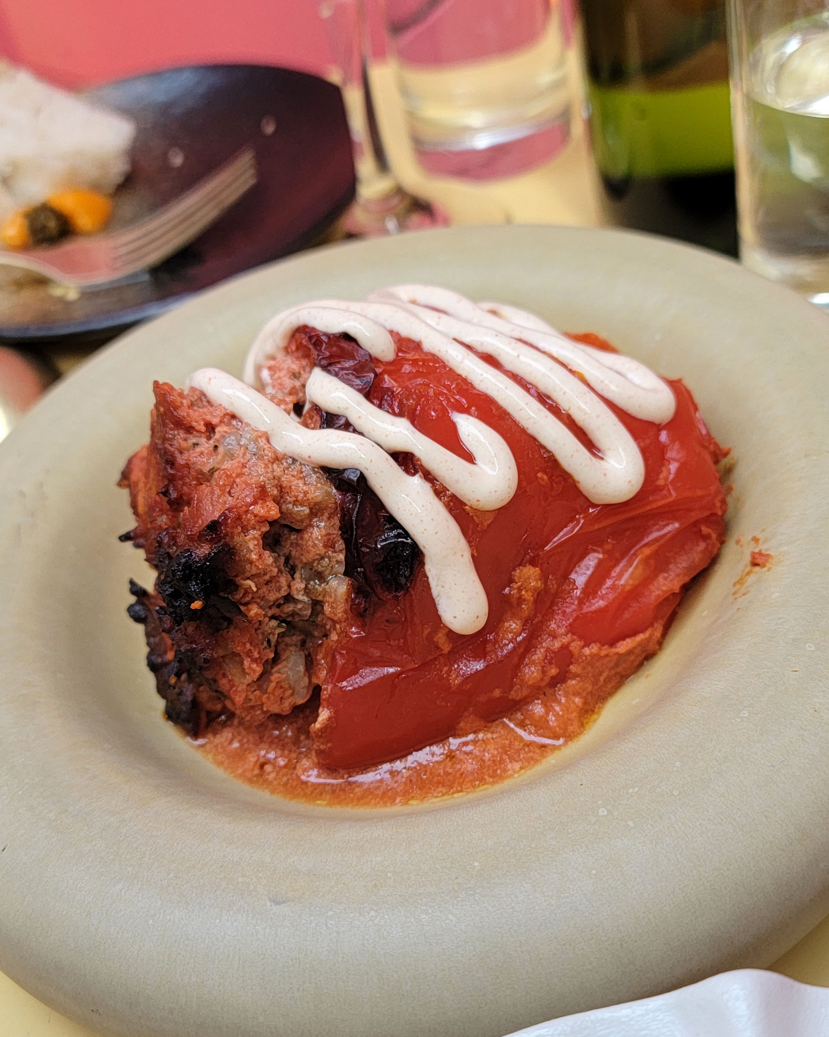 This was probably the best (and biggest) dish we tried. Inside was a nice mixture of spiced meats, rice and cheese. I would definitely get this again. Save some bread to drag through that delicious sauce too.