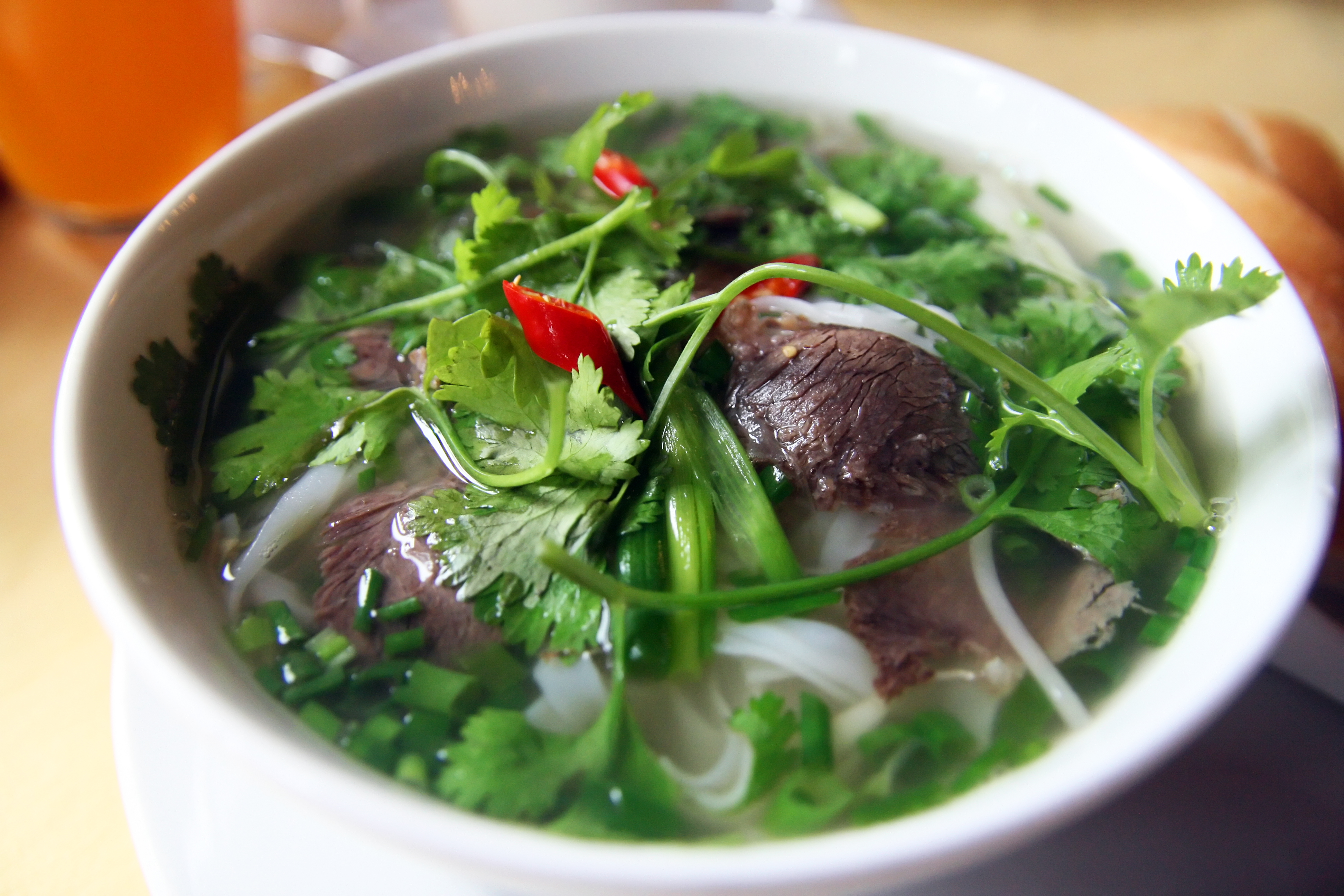 Vietnamese phở might be some of the tastiest, most soul-warming food you can ever funnel down your gullet. For my purposes, there is really only one kind of phở with which you should concern yourself, and that is phở bò, or, put into English, Vietnamese beef noodle soup. There are plenty of varieties, like chicken (phở gà), but come on… really? If you are getting it, get a big bowl of the mixed beef type. Although, I must say, sometimes I like to order with just the thin-sliced eye-round meat, or that and beef meatballs.