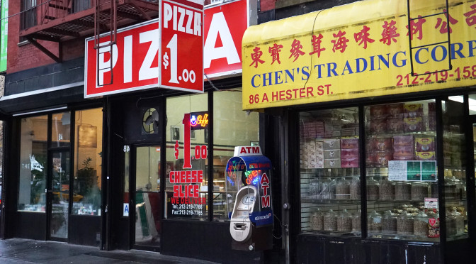 I walked by this little joint on Hester while I was on a stroll through Chinatown. I hit it up. Apparently it is also known as “Hakki Akdeniz” or “KF Hester Pizza” according to some Google searching. Not bad, but there are better spots up by me for the cheap pizza hunger fix. I’d say that the sauce, cheese and crust were all middle of the road in terms of the dollar joint / category 3 standard (they do serve other pies as well).