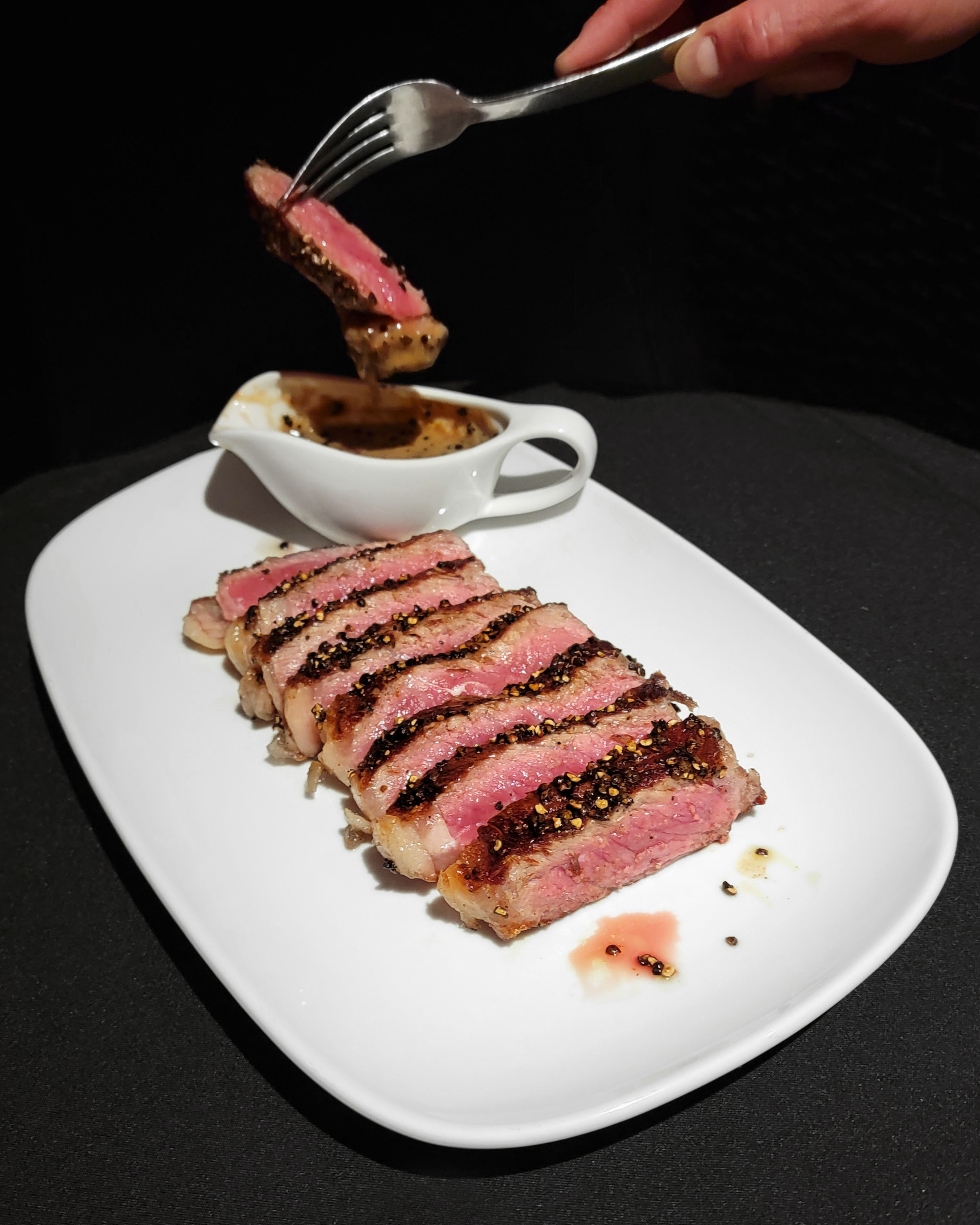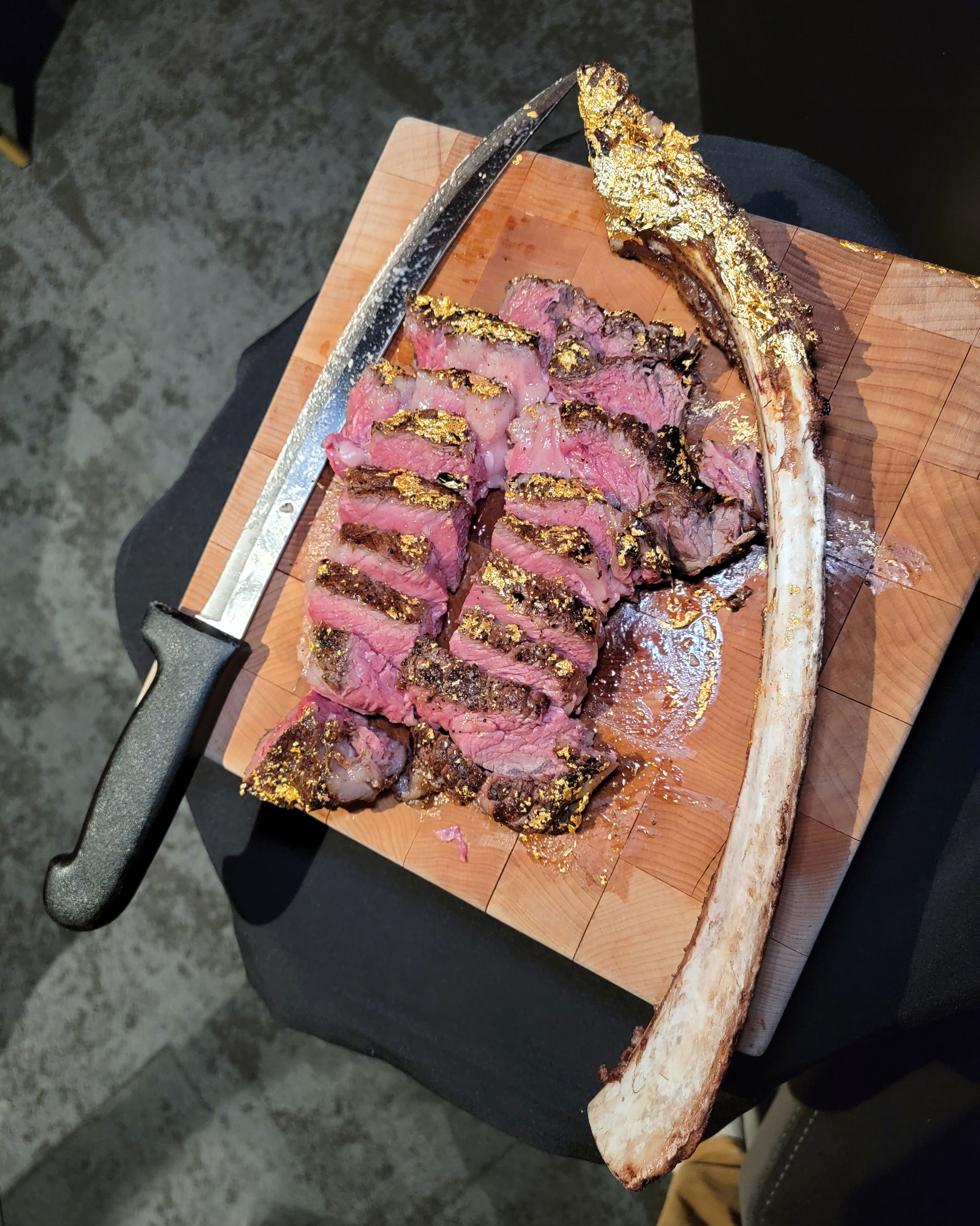 The menu here at Primal Cut Grille (Inside the Sapphire 39th Street strip club) is largely the same as the menu at Primal Cut (inside the Sapphire 60th Street strip club). This review is just a photo dump of the items we had there, with reference back to the original review of the 60th Street location (which is now undergoing renovations). Also check out this cool video of their baller’s steak, the Golden Tomahawk: