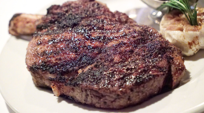 I had the 24oz bone-in rib eye. The chop itself was prime quality, but not aged. It was slightly thicker on the bone side than the fat cap side, which made me worry about the evenness of cooking.