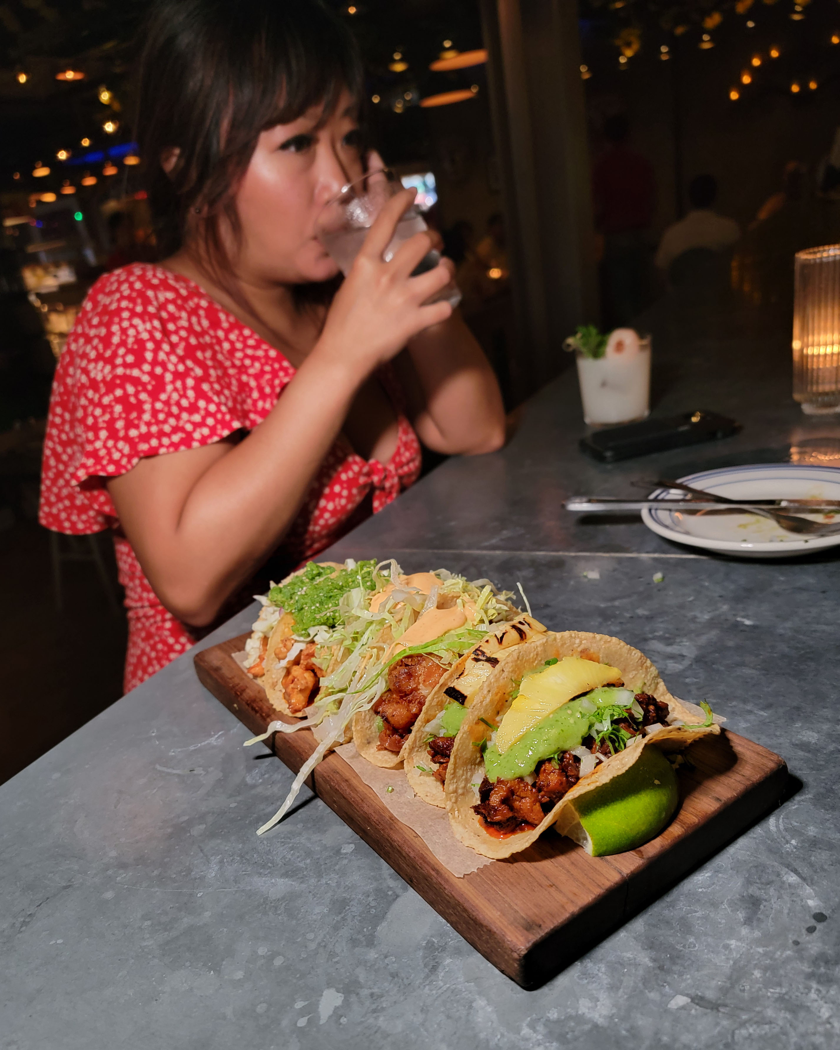 We tried the shrimp, fish and al pastor tacos. Of these, the al pastor was the best, with the shrimp coming in just behind at second place.