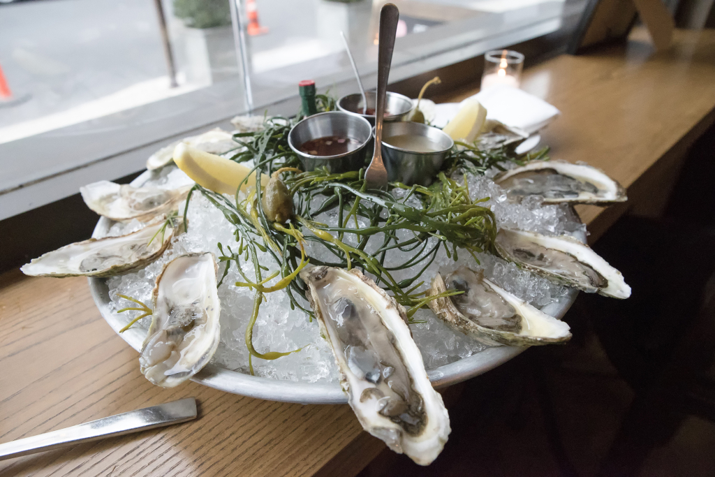 There’s an absolutely awesome happy hour deal here. Dollar oysters and half price drinks and bar bites. The bar is big too, and it was already pretty full at 6:00pm when I arrived. They even have extra seating at high tables nearby, and a narrow bar along the windows. By time we were finishing our meal, the place was packed. Seems like a good scene. Anyway, we ordered up a few drinks and a dozen oysters before sitting for dinner. Total steal! Also worth noting here: HUGE wine selection, and beautiful displays of wine, for those of you who are wine freaks.