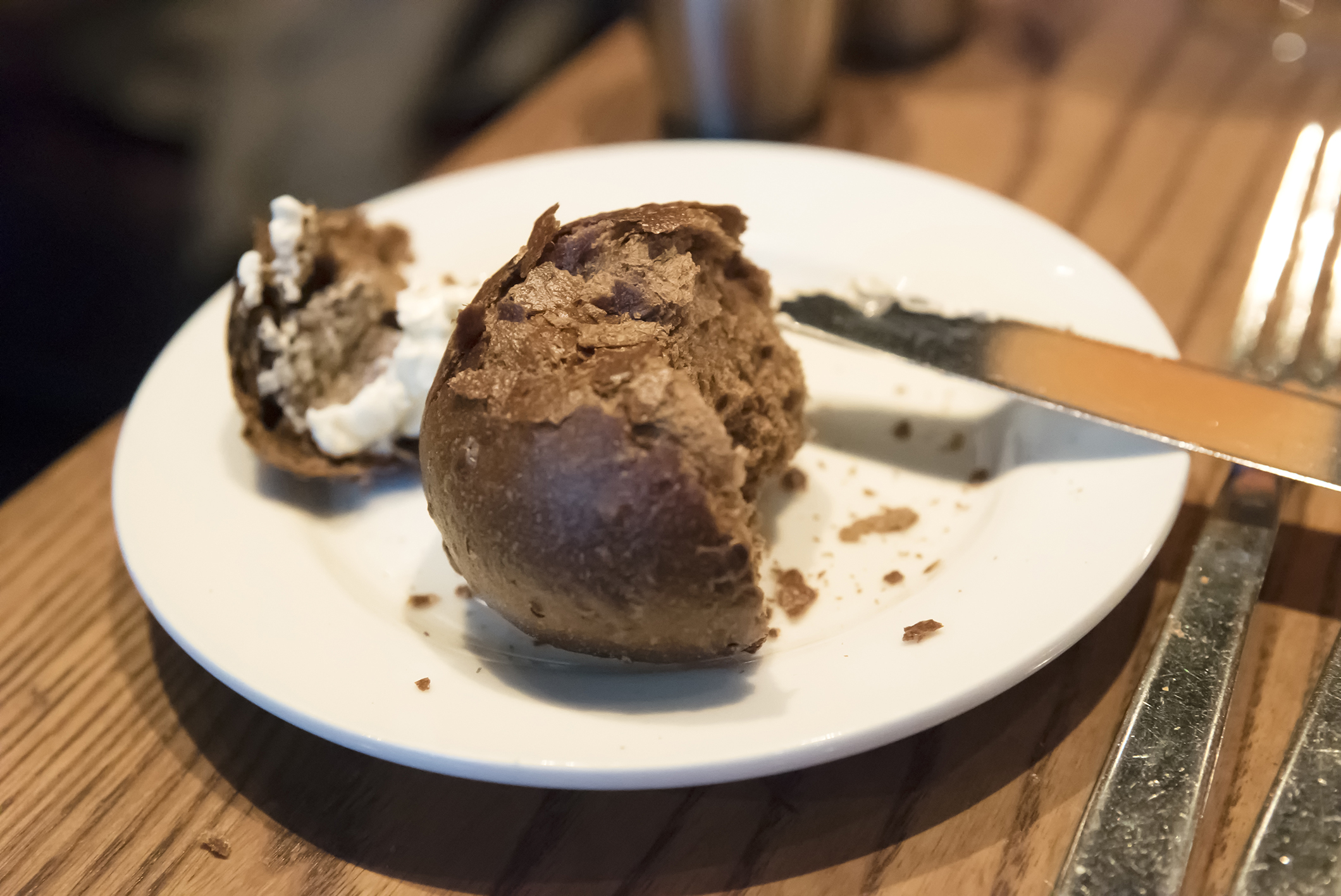We also tried the creamed spinach. Our waiter talked us away from sautéed spinach and toward this dish because it had a nice bread crumb crumble on top. I wasn’t crazy about it. The texture of the spinach was a little too watery for my taste. Kinda wish we had stuck with the sautéed spinach order instead, but it’s all good.