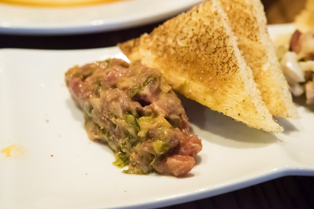 Then we dove into a trio of tartares: tuna, scallop, and beef. All were good, but we liked the tuna the best: