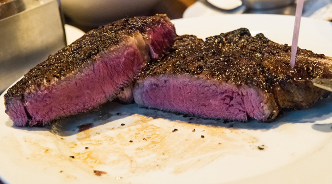 I had the 60-day dry aged signature rib eye, of course. It was fucking great. Some of the fat wasn’t as soft and jelly-ish as I like, so that’s why I took a point (I had some scraps left). Otherwise this place is spot on, perfectly cooked, perfect temperature, no bleed out, nicely rested, juicy as a pair of titties in an early 90’s rap video.